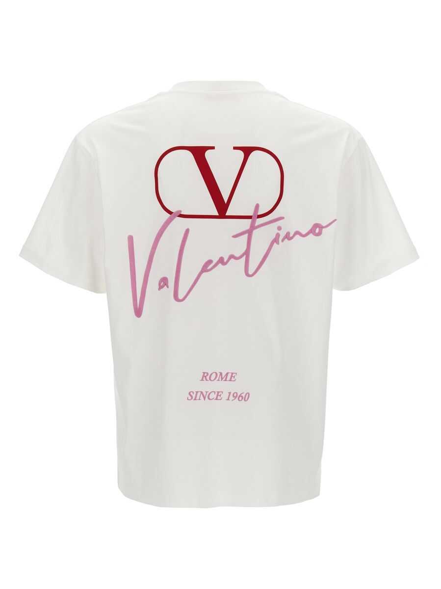 White cotton t-shirt from Valentino featuring round collar, short sleeves and prints.