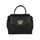 Black leather La Medusa top-handle tote from VERSACE featuring Medusa plaque detail, foldover top, single rounded top handle, internal slip pocket, gold-tone hardware and adjustable-length chain.