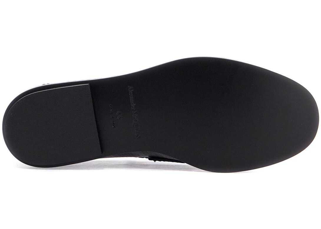 The Jupiter loafers by Alexander McQueen are made of textured glossy leather, with a simple design and tone-on-tone stitching. The interior is lined in leather, while the sole features a rubber heel for added comfort.