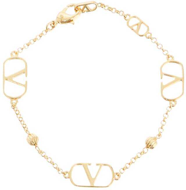 Valentino Garavani bracelet made of golden brass with Signature Vlogo and ribbed spheres. Closure with a lobster clasp. The item in the photo corresponds to size S.