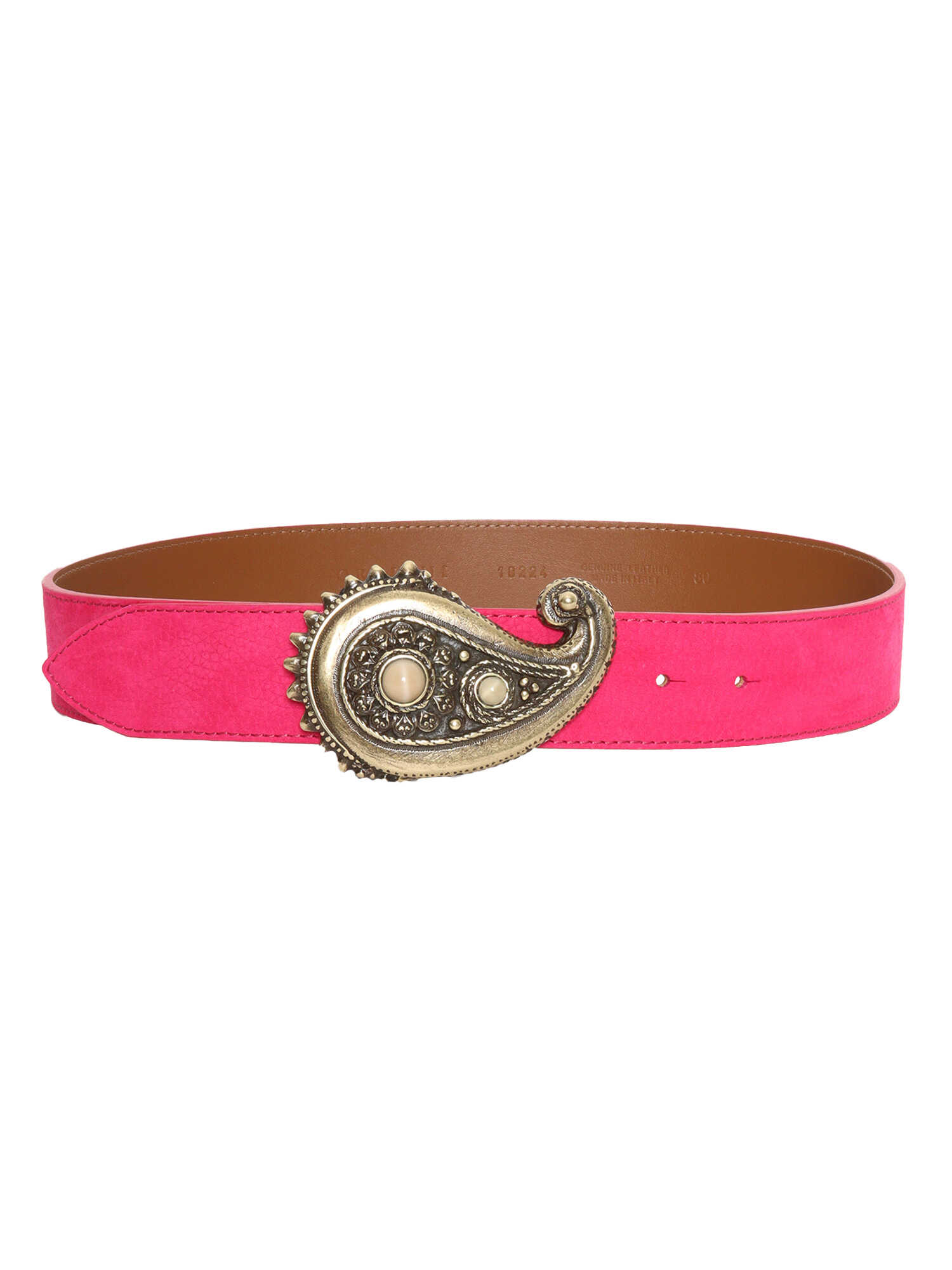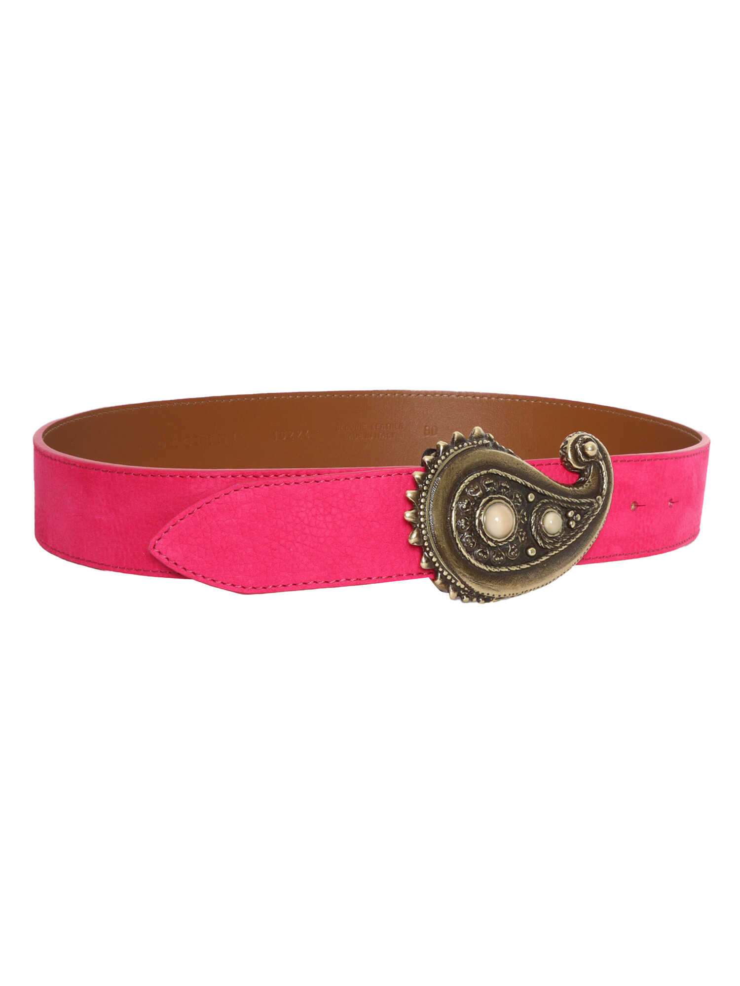 Nubuck belt, cashmere buckle with stones, golden brass finish metalware 4cm