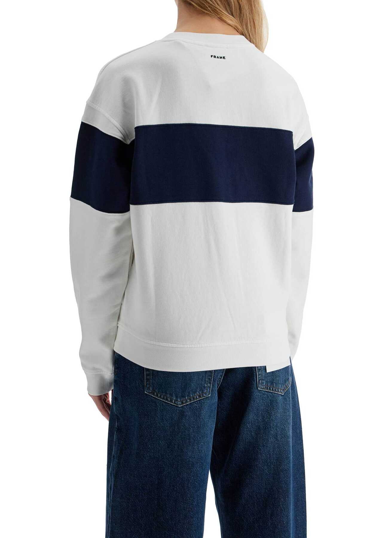 This crewneck sweatshirt from the Frame x Ritz Paris capsule collection is made of soft, brushed cotton jersey. It features a relaxed fit with contrasting navy blue inserts and is embroidered with the Ritz Paris logo on the front and the Frame logo on the back of the neck. Complete with side pockets and ribbed edges, this sweatshirt is perfect for a casual yet stylish look. The model is 177 cm tall and is wearing size XS.