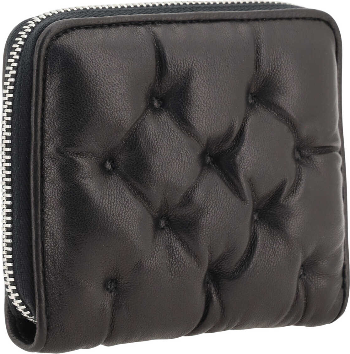 Leather Wallet by Margiela, brand's iconic logo patch applied to front, zip-around closure, padded leather design, card compartment, iconic brand monogram press-stamped inside.