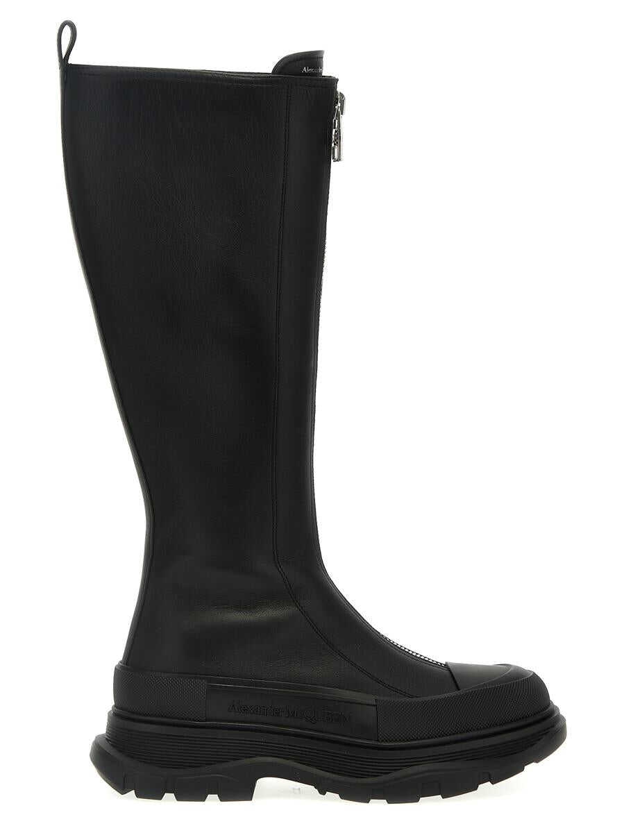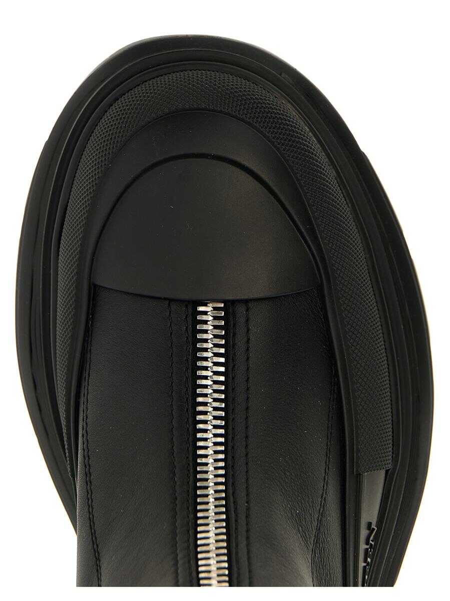 'Tread Slick' leather boots, front zip closure, oversized rubber sole