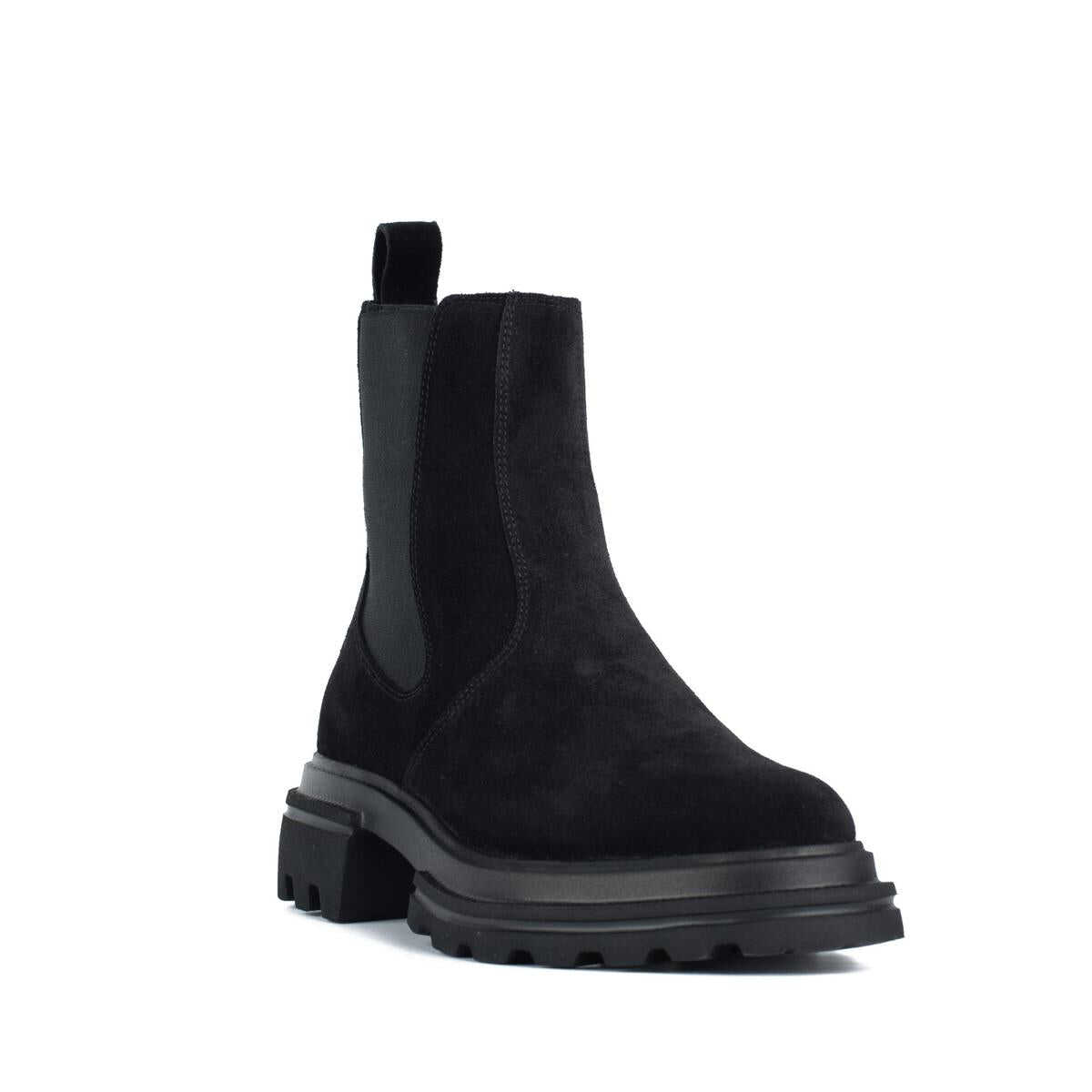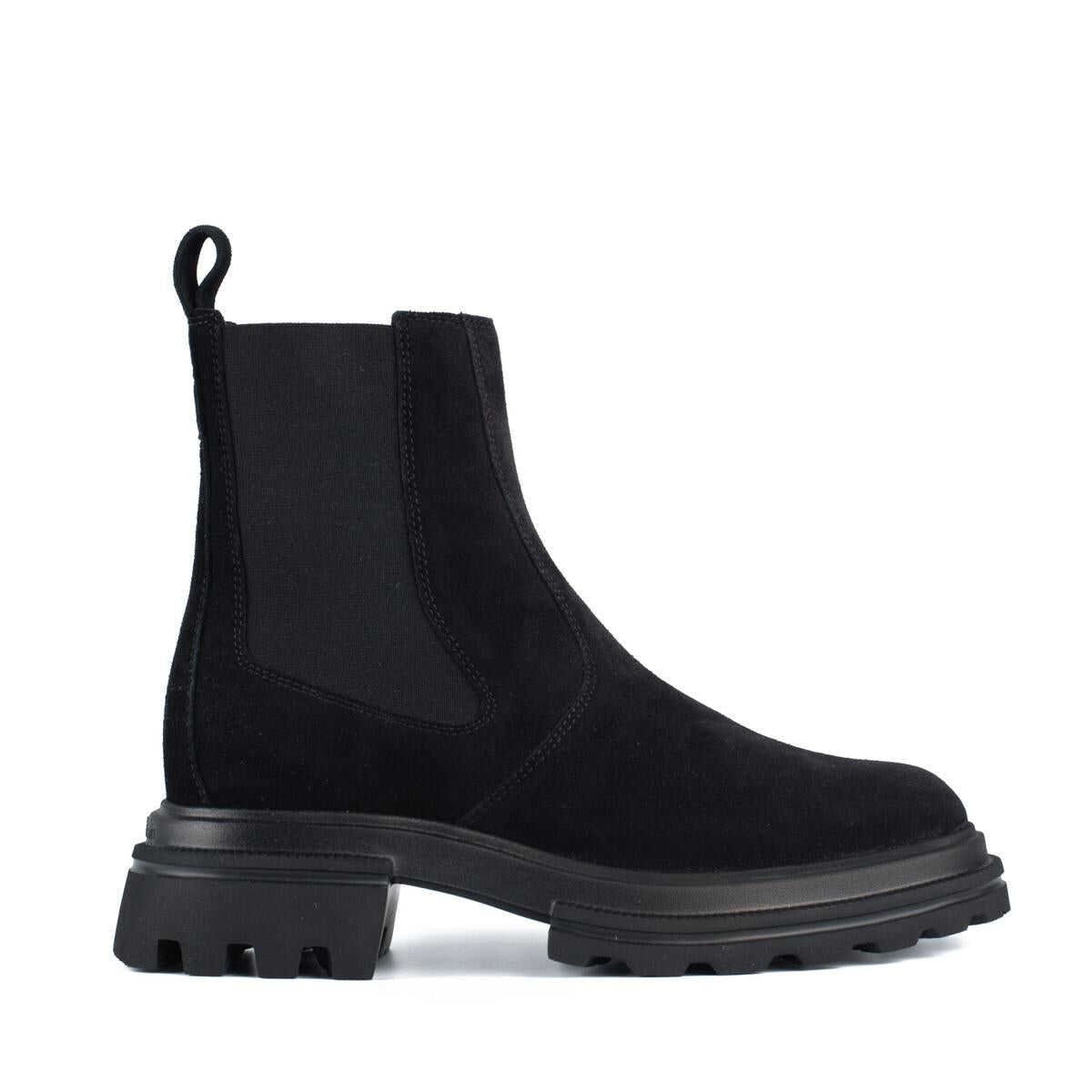Item Color: Black | Made in Italy | These Chelsea ankle boots have a new workwear-inspired, two-island extralight sole | Made of suede, they feature a streamlined upper with side elastic inserts and eyelet on the back | Chelsea Ankle Boot Hogan 10-Storey | Leather upper | Side elastic inserts | Soft 5 mm insole | EVA soleTotal height 5.5 cm | Composition: Suede leather