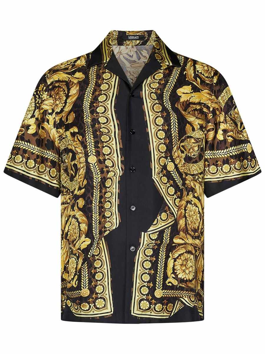 - Versace - Barocco Shirt - Made of silk - Black and gold - Front button closure - Notched collar - Short sleeves - Side vents - For men