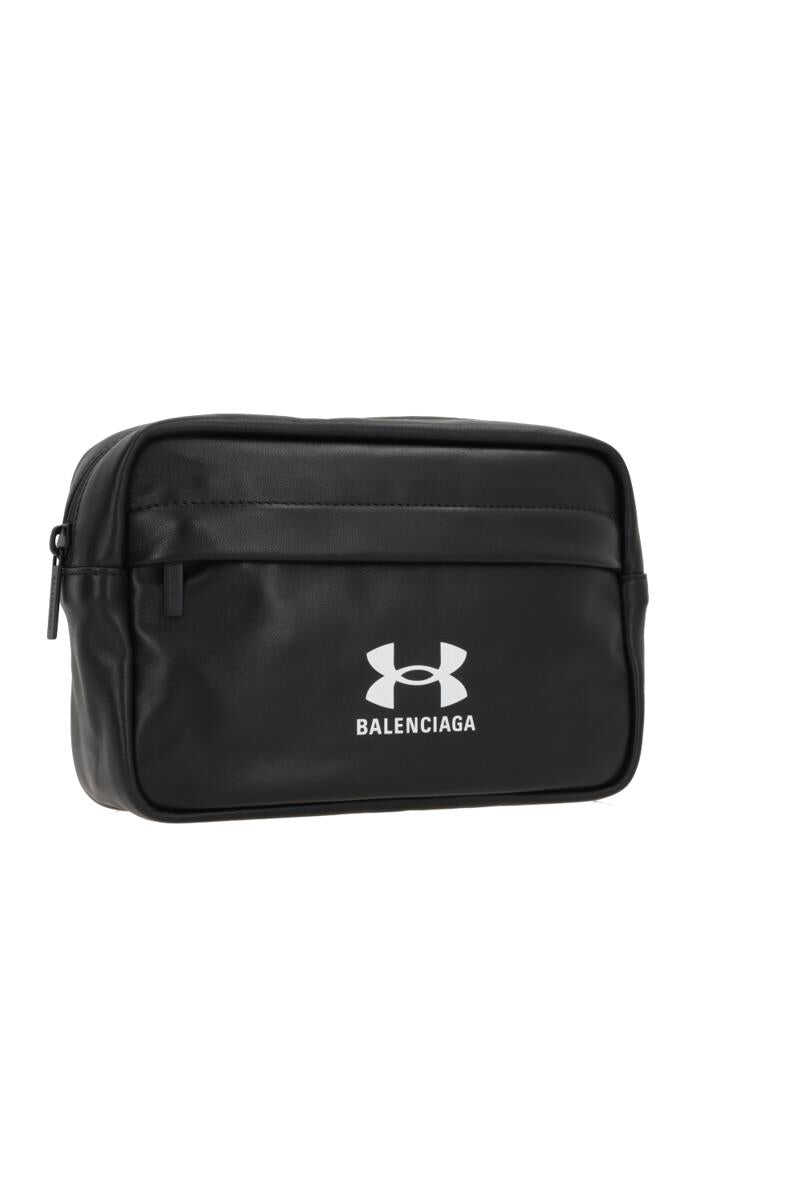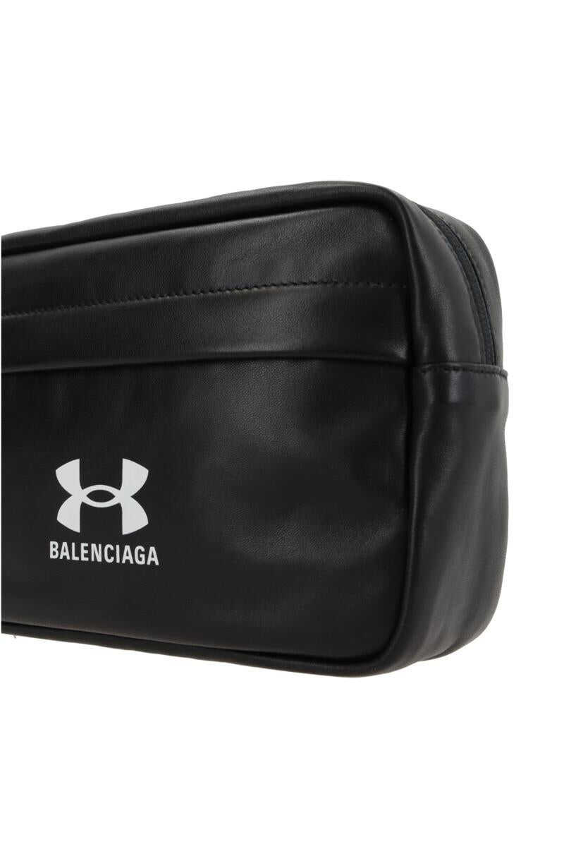 Balenciaga beauty case designed in collaboration with Under Armour® and crafted in black nappa leather with a front logo print. It features black metal hardware, a zip closure and a nylon-lined interior with a flat pocket. The design is completed by a front zip pocket.