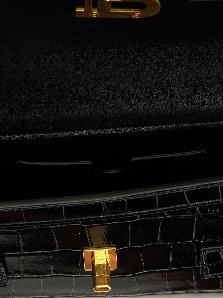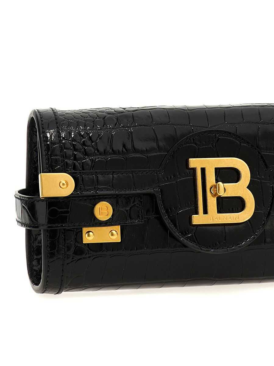 'B-Buzz 23' crocodile-effect leather clutch bag, flap closure with metal logo and front swivel, metal details, removable chain shoulder strap