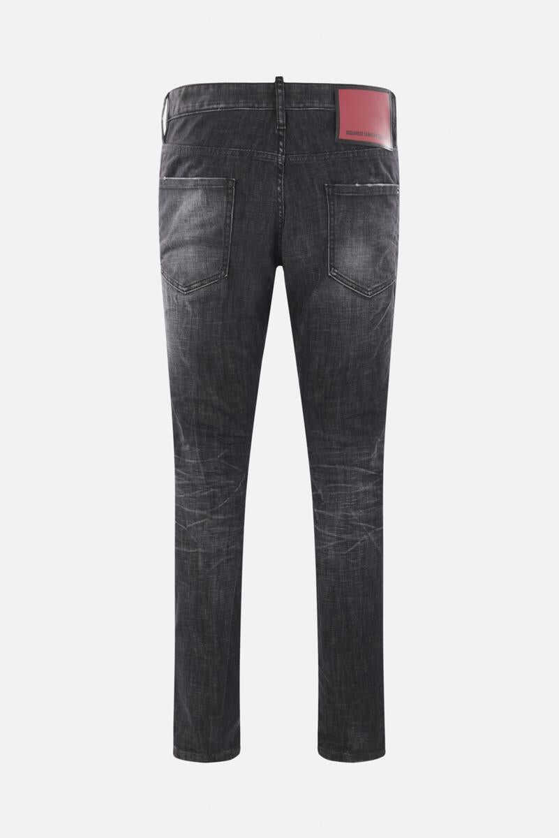 Dsquared2's long-crotch jeans crafted in grey stretch cotton denim with distressed finish. Featuring metal button closure, belt loops, five classic pockets and logo patch at back.
