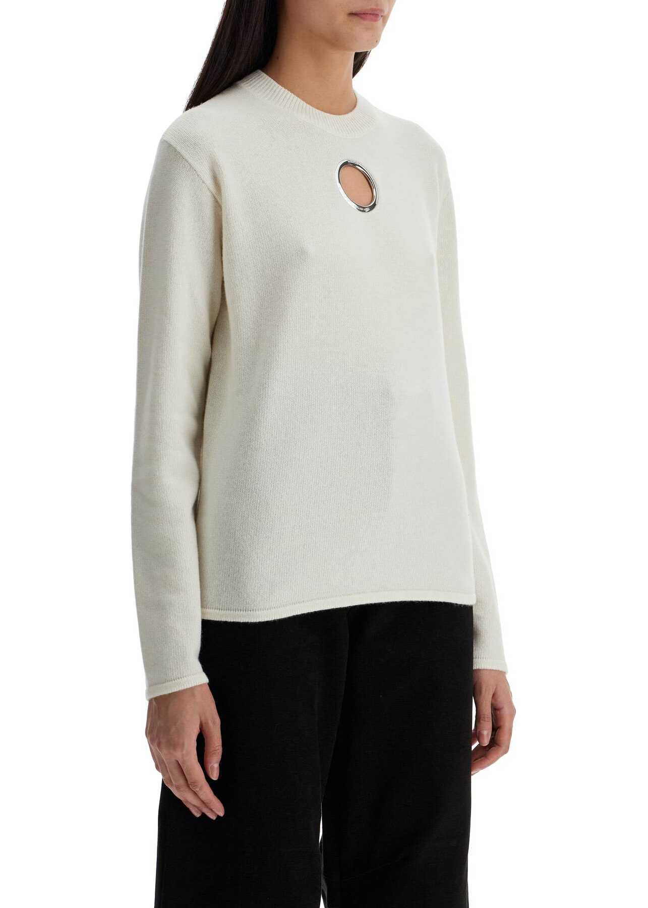 The Moncler x Willow Smith crewneck sweater is made of a luxurious blend of virgin wool and cashmere, with a relaxed fit. The monochromatic look is enhanced by a metal front eyelet for a futuristic aesthetic inspired by 90s sci-fi films. Finished with ribbed collar, the collaboration logo is applied on the sleeve. Model is 177 cm tall and wears size XS.