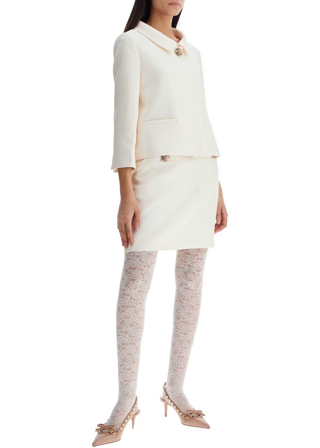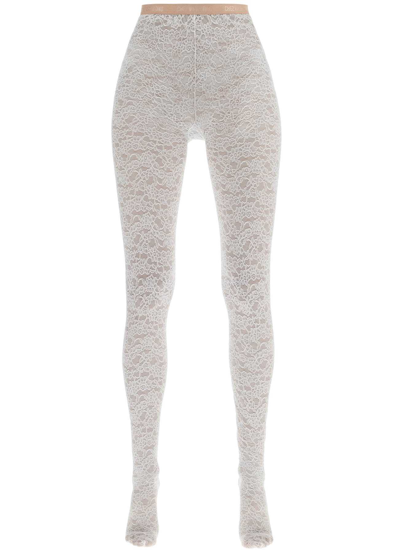 Valentino Garavani tights made entirely of stretch lace and detailed with an elastic waistband featuring "Chez Valentino" jacquard lettering. The item in the photo corresponds to size S/M.