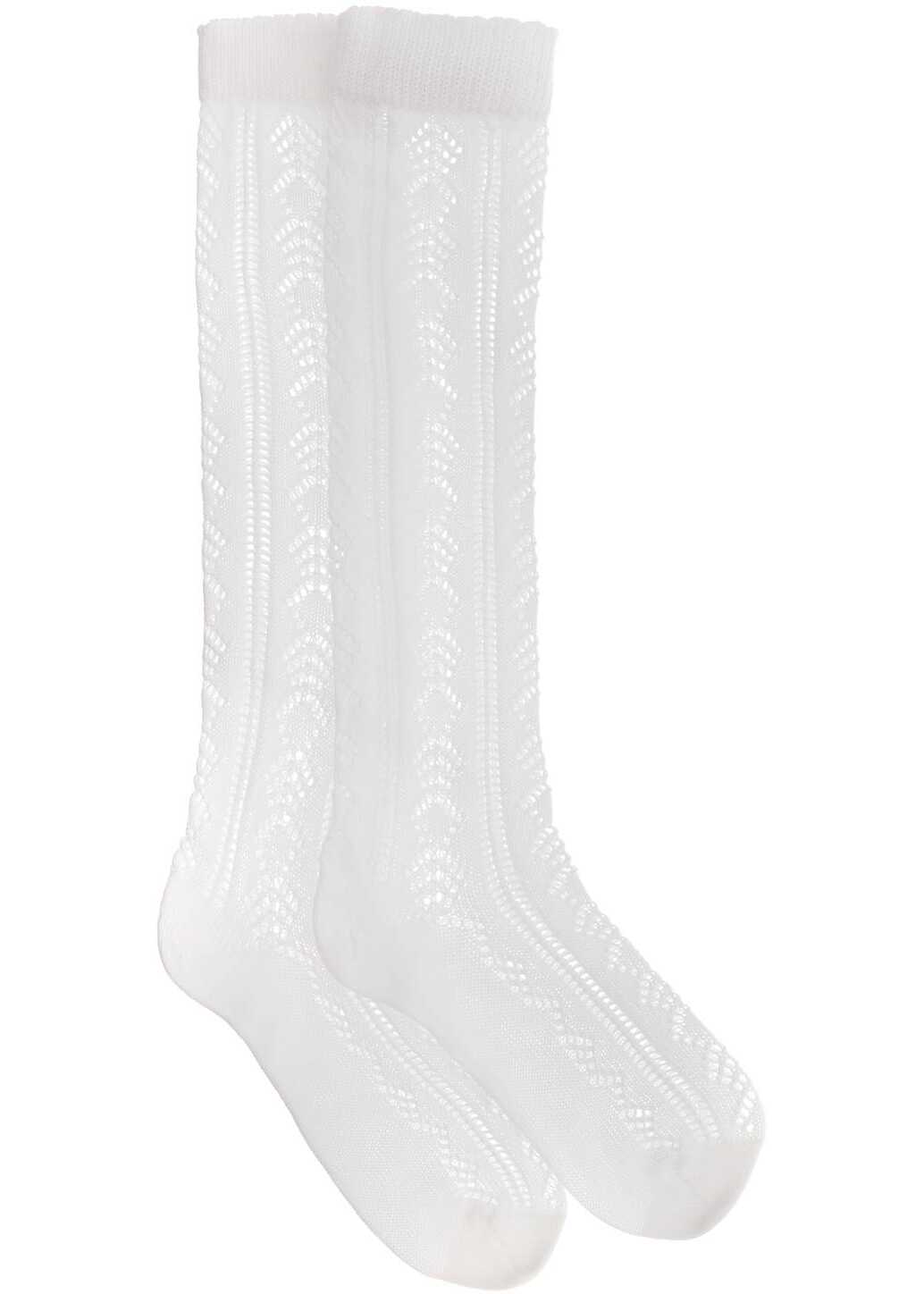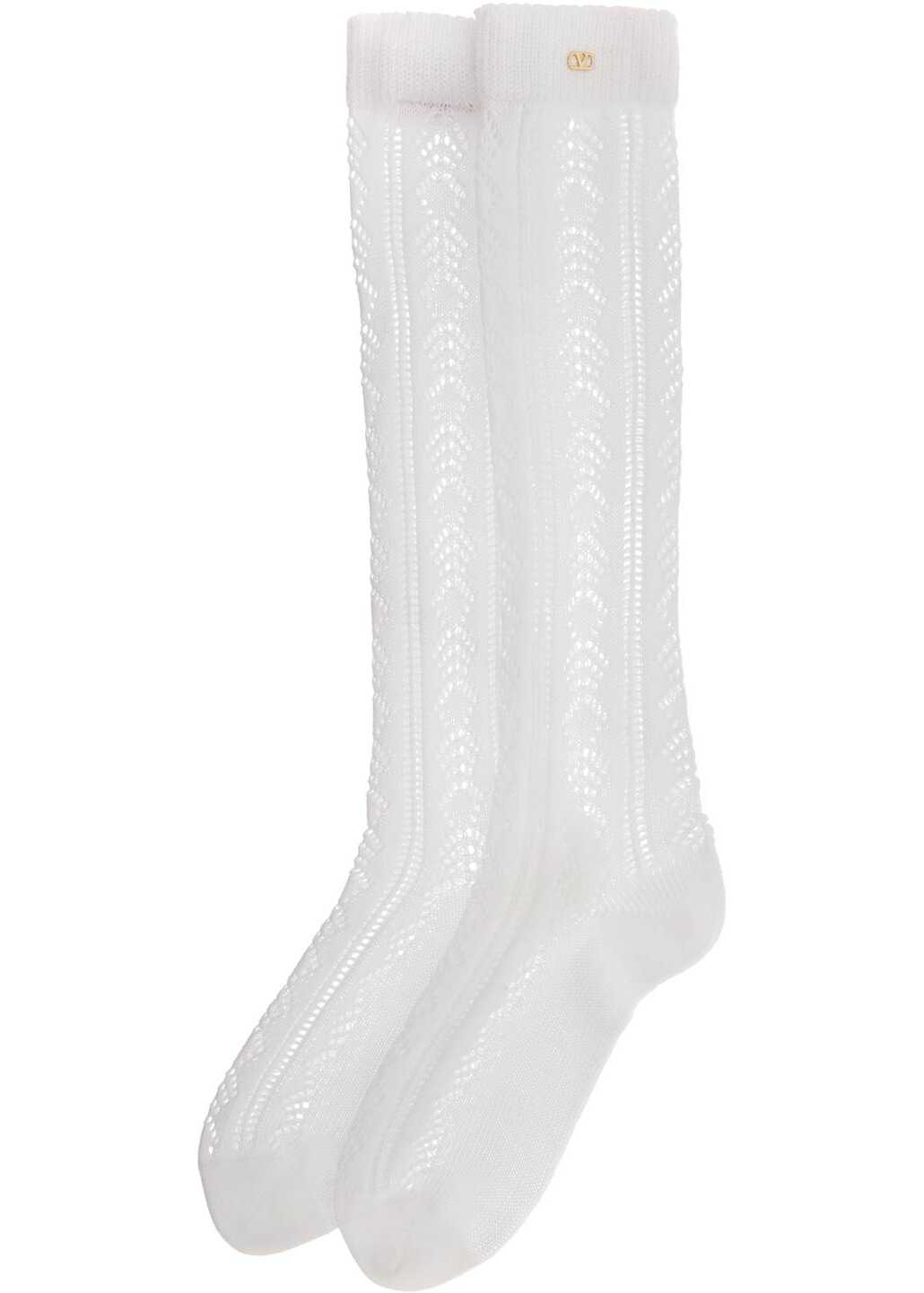 Valentino Garavani long socks made of pure perforated cotton knit and detailed with mini gold metal VLogo Signature applied on the top ribbed edge. The photographed item corresponds to size S/M.