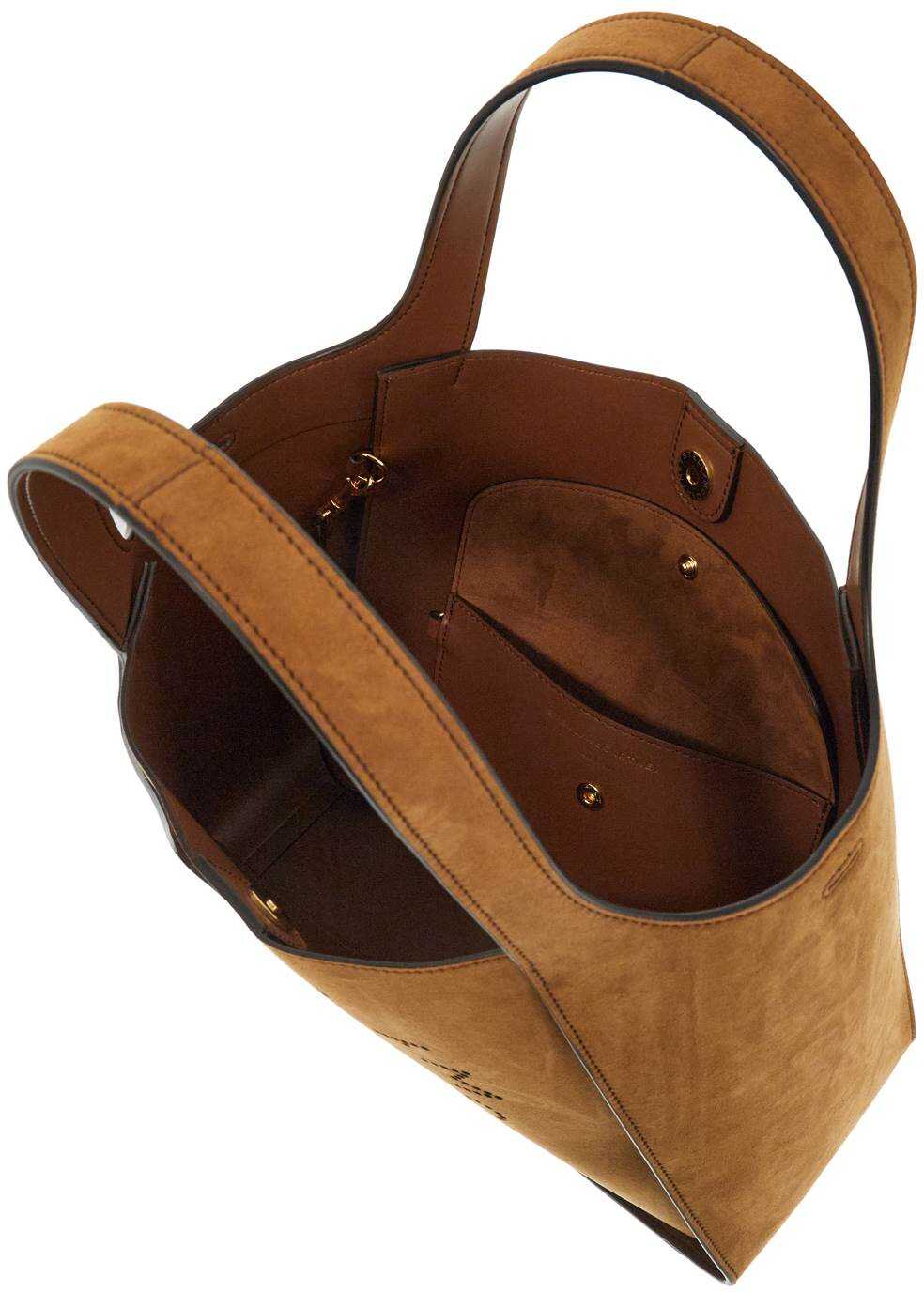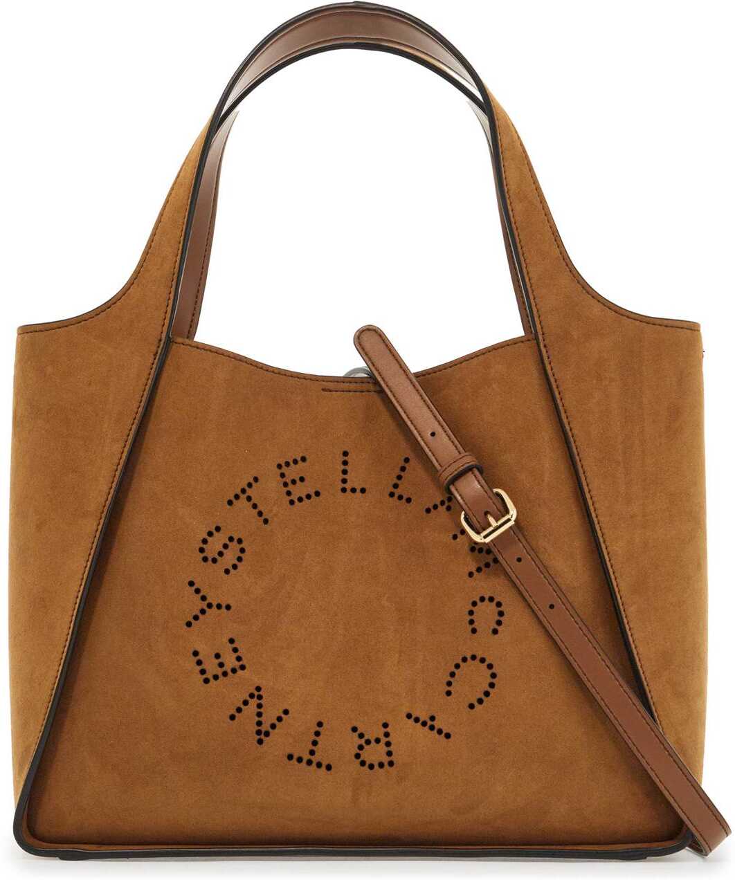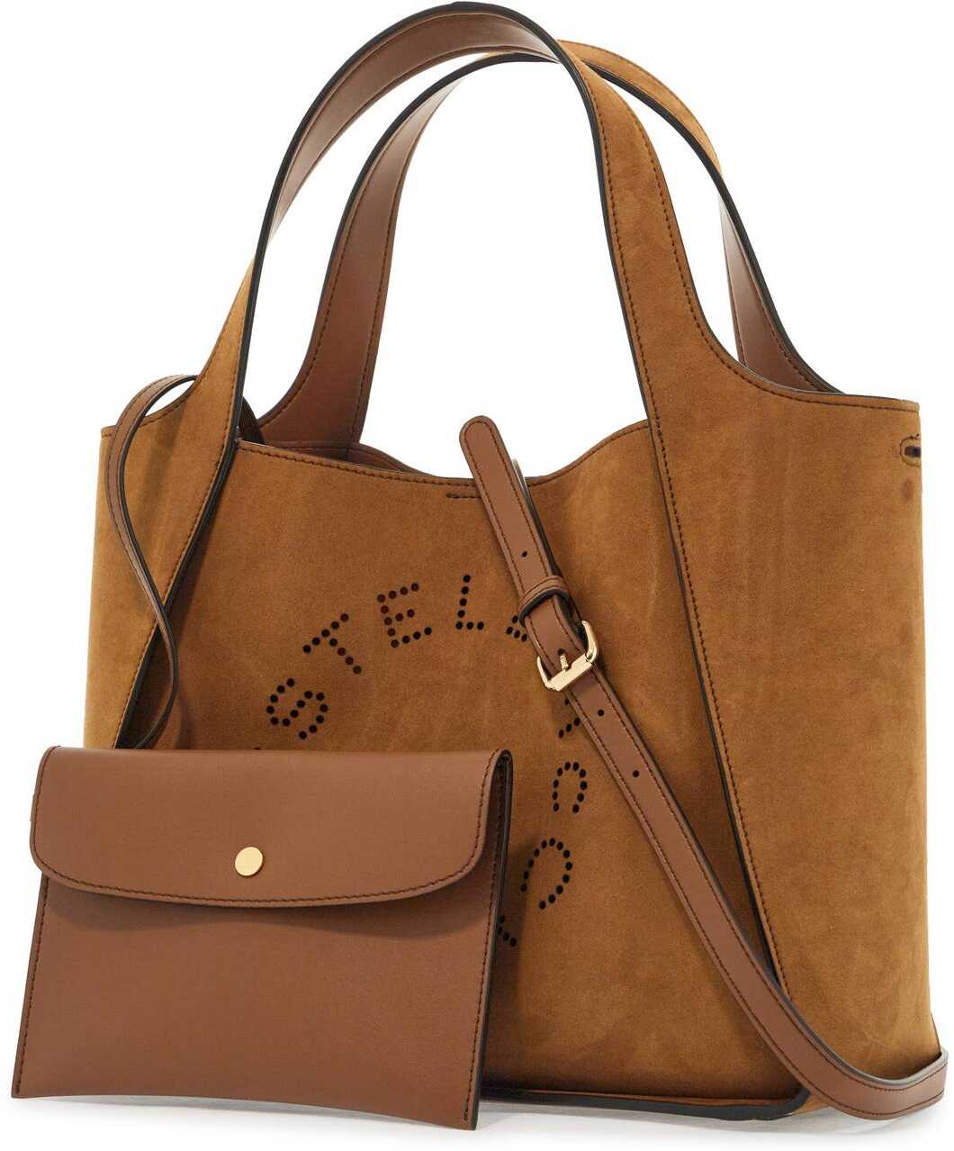 This Stella McCartney shoulder bag is made from their vegan alternative to suede and features a perforated Stella logo on the front. It has a magnetic button closure, an interior in eco-leather with a removable matching pouch. The adjustable and removable shoulder strap and metallic accessories have a gold finish.