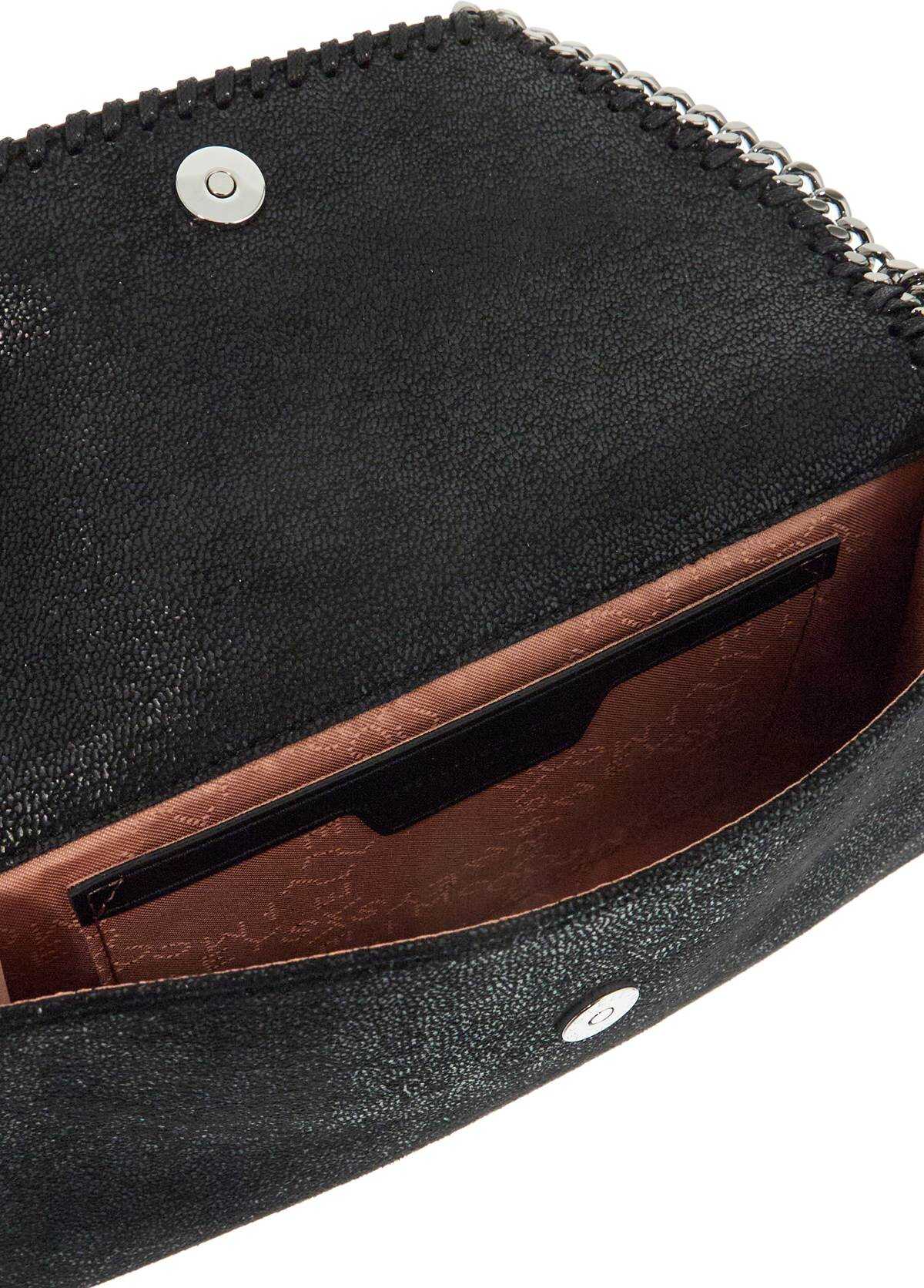 Stella McCartney crossbody bag crafted in shaggy deer faux leather with metal chain flap edge and shoulder strap. Magnetic button closure, branded fabric lining and one inner open flat pocket. Silver-finished metalware and iconic medal with engraved logo.