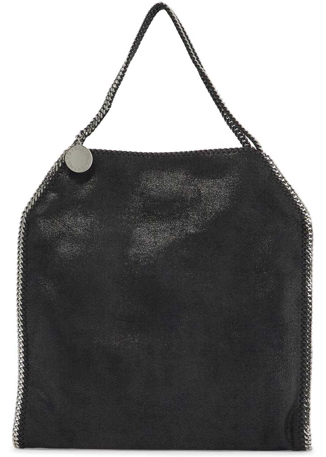 The large Falabella tote bag by Stella McCartney is made of shaggy deer eco-leather with edging, double handles and a chain shoulder strap woven in a diamond effect with waxed organic cotton laces. Magnetic button closure. Lined interior with a zippered pocket. Iconic engraved logo medallion and metal accessories with ruthenium finish.