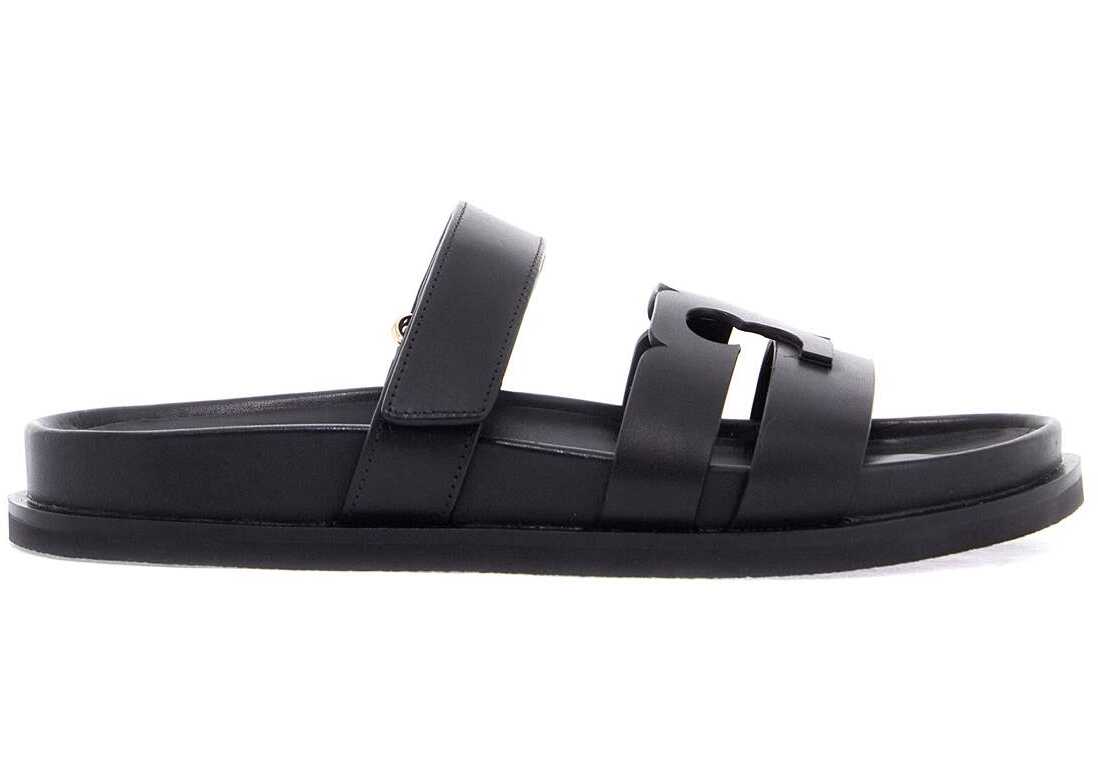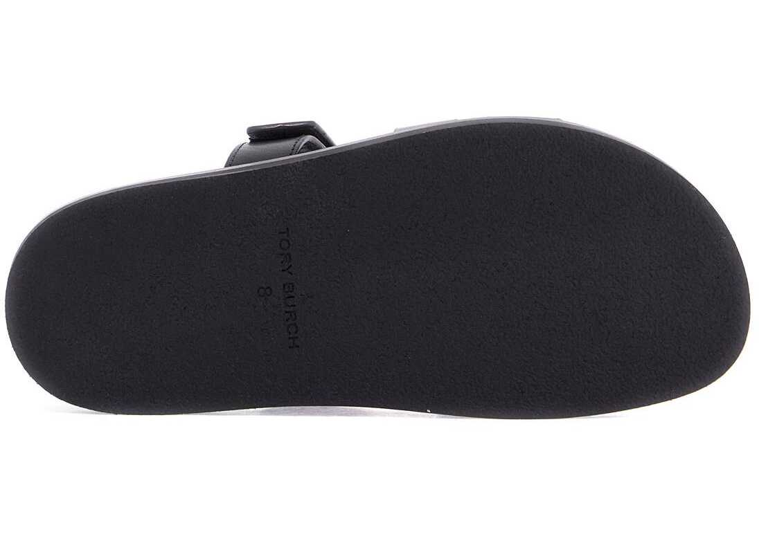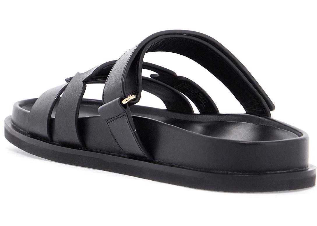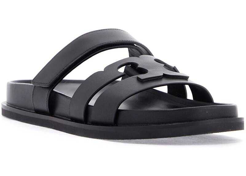 The Ines Sport slides by Tory Burch are made of smooth leather with straps that mimic the iconic double T shape. A velcro strap secures the foot, while the anatomical leather insole provides supreme comfort. The rubber sole adds durability and traction.