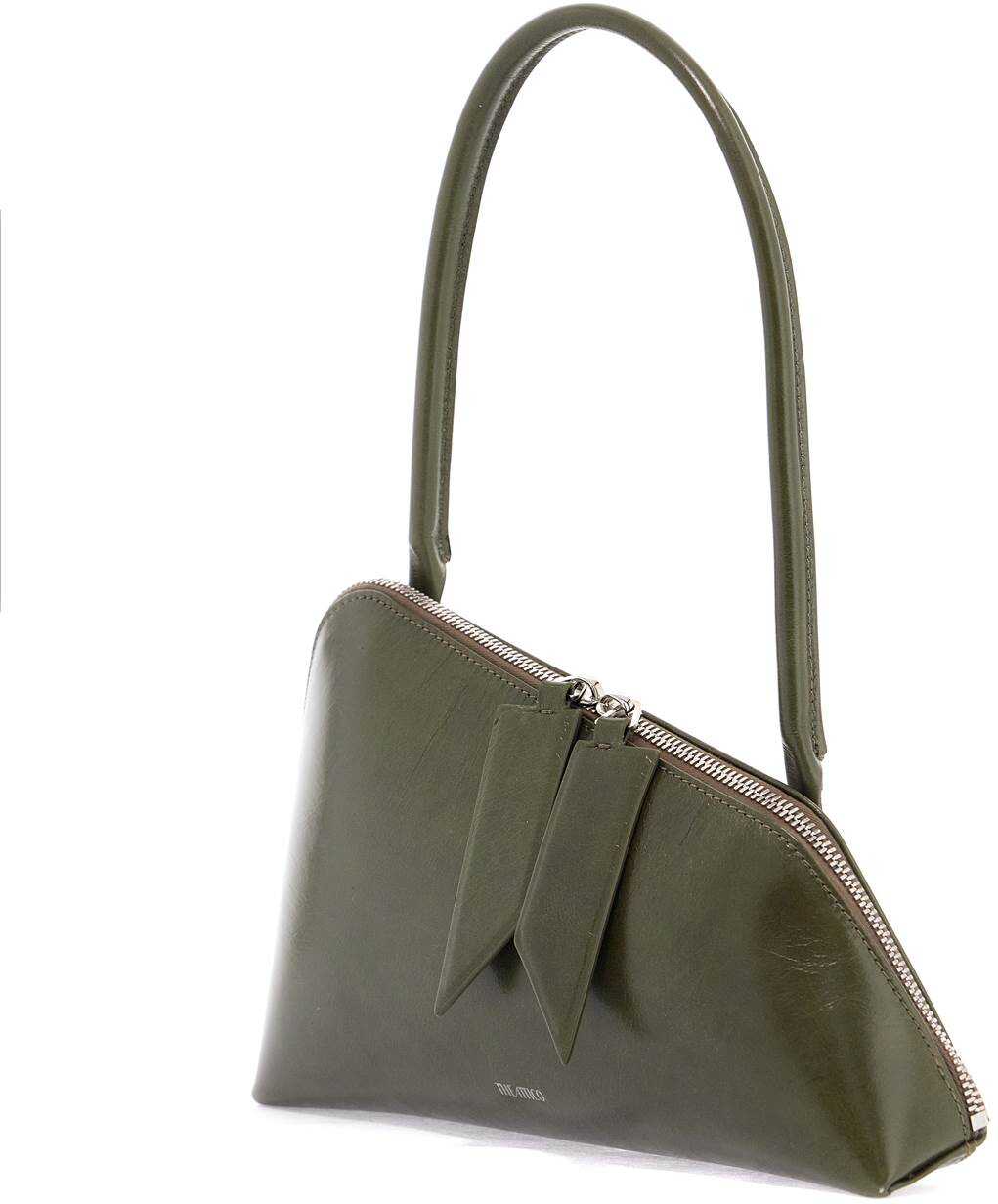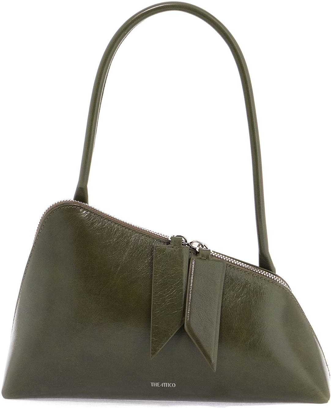 The Attico's Sunrise shoulder bag is made of crackled leather and features an asymmetrical design with a double-slider zip closure, large puller, and lined interior with a slit pocket. Silver-toned hardware adds a touch of elegance to this piece.