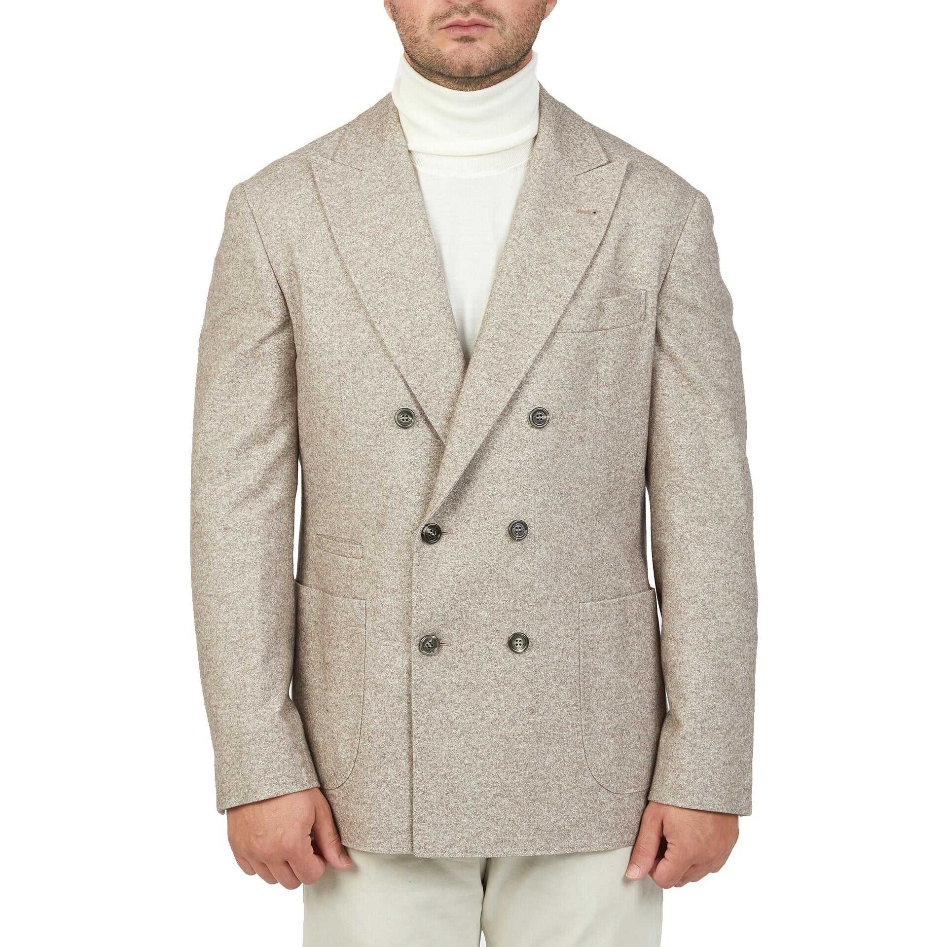 - Composition: 2% Cashmere 48% Silk 50% Wool - Long sleeves - Fully lined - Front button closure - Dry clean - Two patch pockets - Inside pockets - Made in Italy - Gender: MEN - MPN MQ4347BBD_TQ434_C047 - Code: JKT BC 1 JD 07 O39 W3