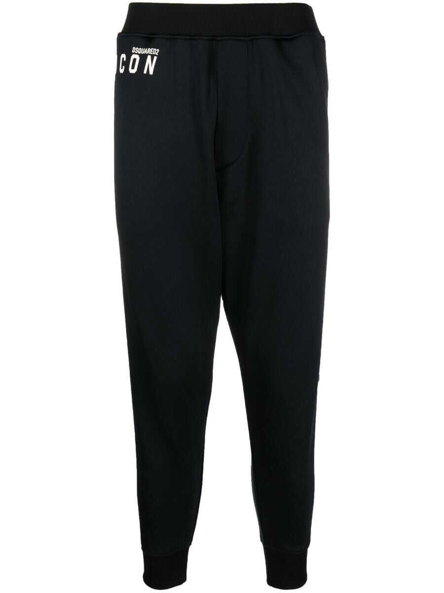 Icon logo-print track pants from DSQUARED2 featuring black, cotton, logo print to the side, elasticated waistband, mid-rise, tapered leg and elasticated ankles.