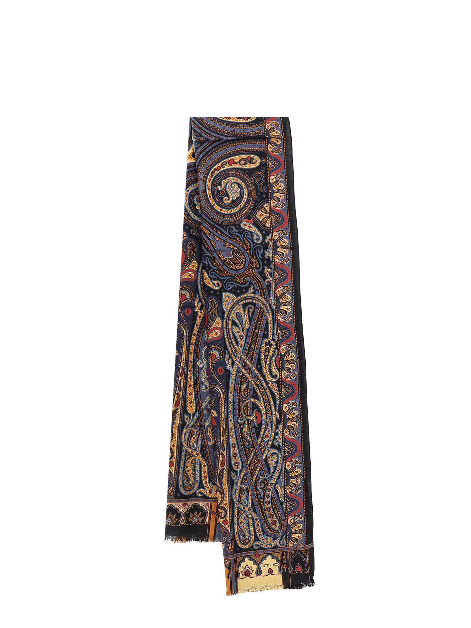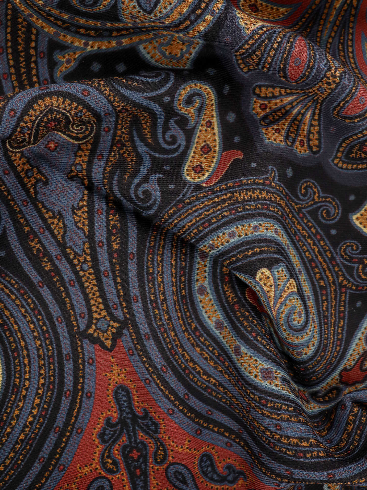 Frayed profiles, Logo detail, Paisley multicolor motif, Logo print, 70% wool 30% silk