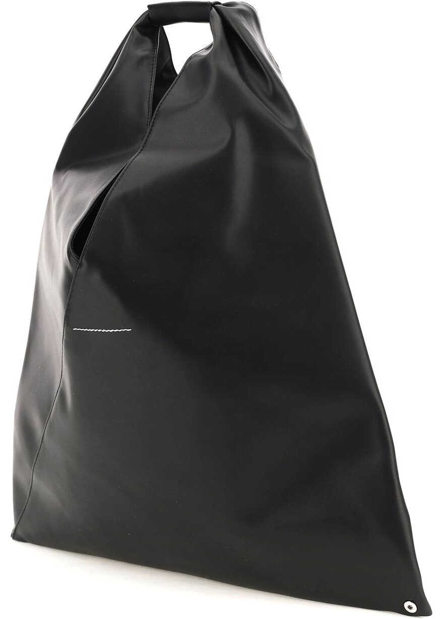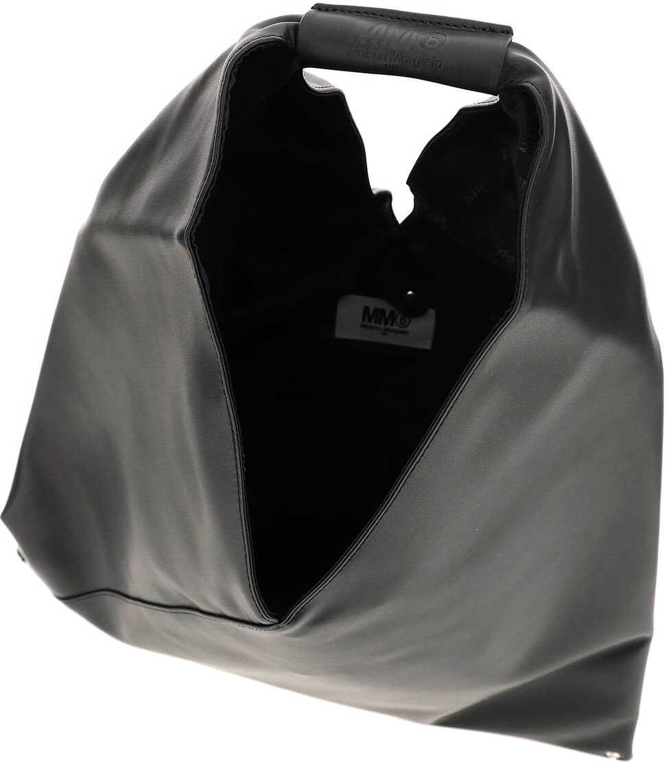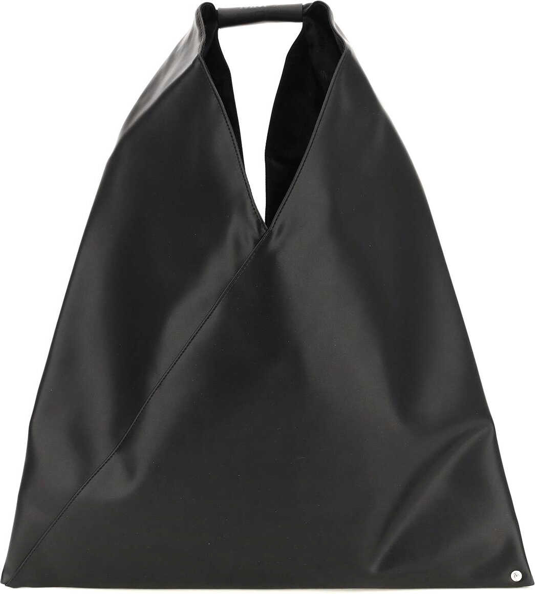 MM6 Maison Margiela Japanese bag in faux leather with double triangle shape ending in the leather-wrapped top handle with debossed logo. Signature straight white stitch on the back. Press-stud on the lower edges to change the bag shape. Press-stud closure, branded fabric lining, one pocket with button. Silver-finish metalware.