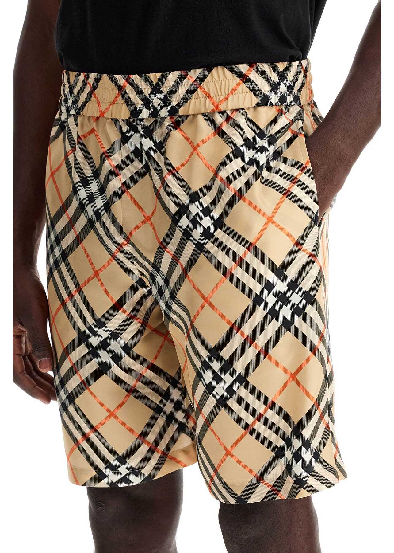 Made of pure silk, these shorts boast the signature Burberry Check pattern all over. They feature an elasticated waistband with internal drawstring and side seam pockets. The model is 187 cm tall and wears a size M.