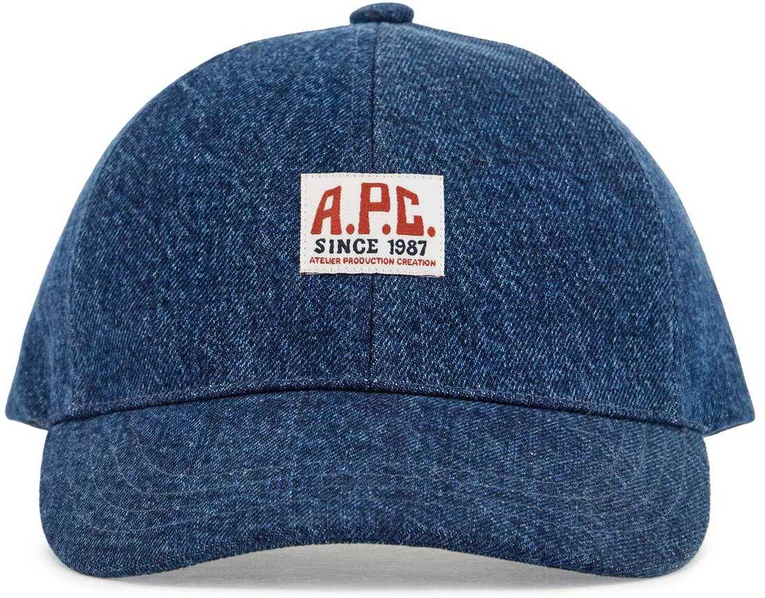 The A.P.C. Charlie Carpenter baseball cap is made of organic cotton denim with a dark wash and finished with an applied logo label on the front. Embroidered eyelets in tone on the front, adjustable strap at the back. Partially lined. The photographed item corresponds to size 58.