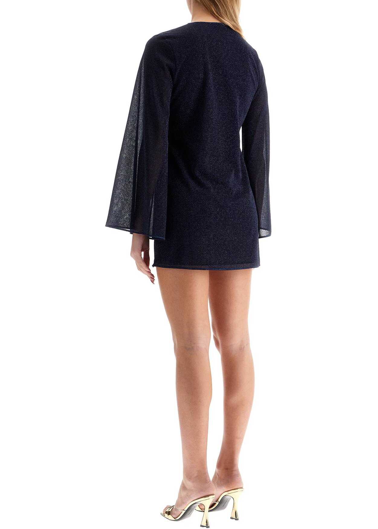Crafted in lightweight lurex jersey, this Osé ree mini dress features a kaftan design with flared long sleeves. The deep V-neck is embellished with a golden metal "O" detail. The model is 177 cm tall and wears size S.