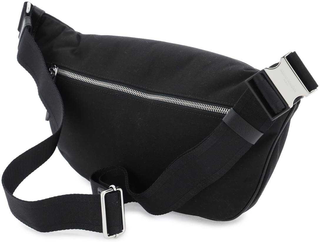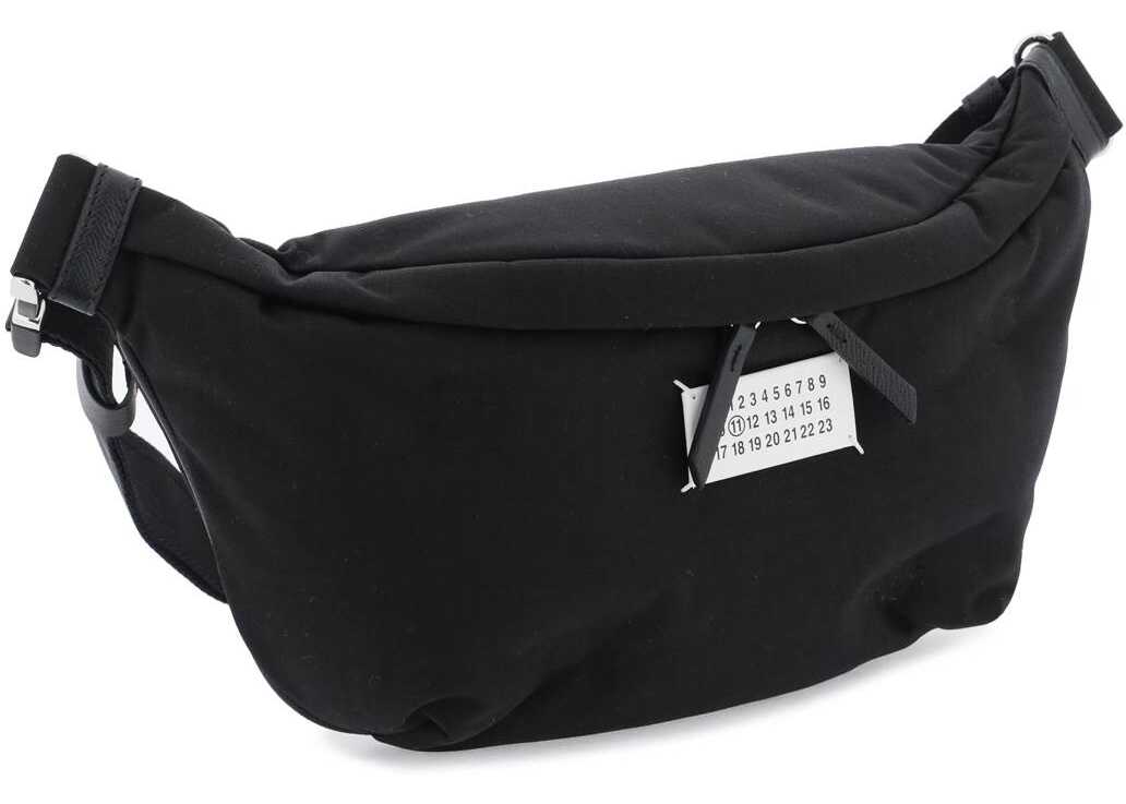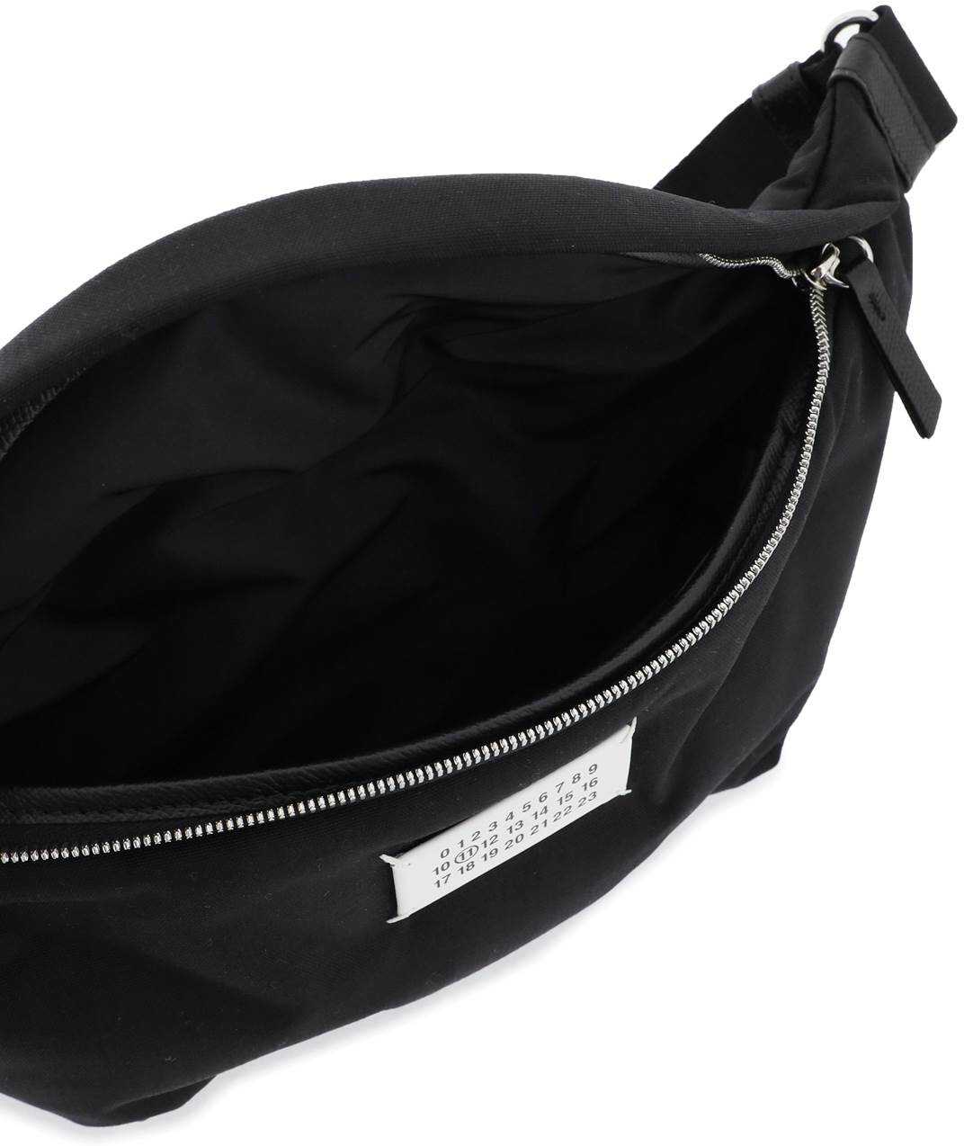 Nylon beltpack from Maison Margiela with two-way zipper closure, lined interior with one zipper pocket and iconic numerical logo patch. Adjustable webbing belt strap and silver-finished metalware.