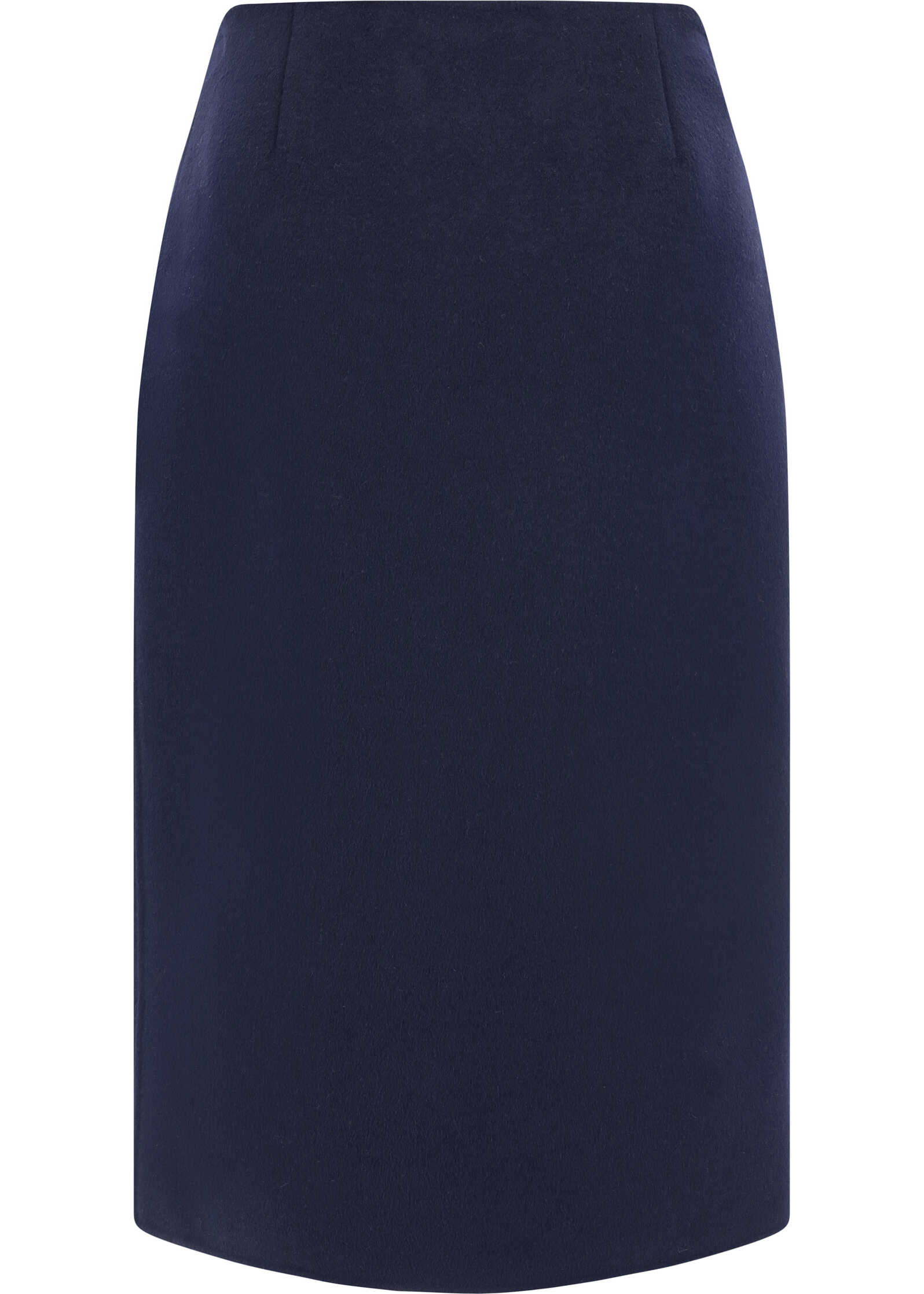 Fleece Wool Midi Skirt by Prada, front closure with double slider zipper, leather strap detail with silver buckle applied on the front, suede finish, iconic enameled triangular plate with brand signature applied on the belt, regular fit.