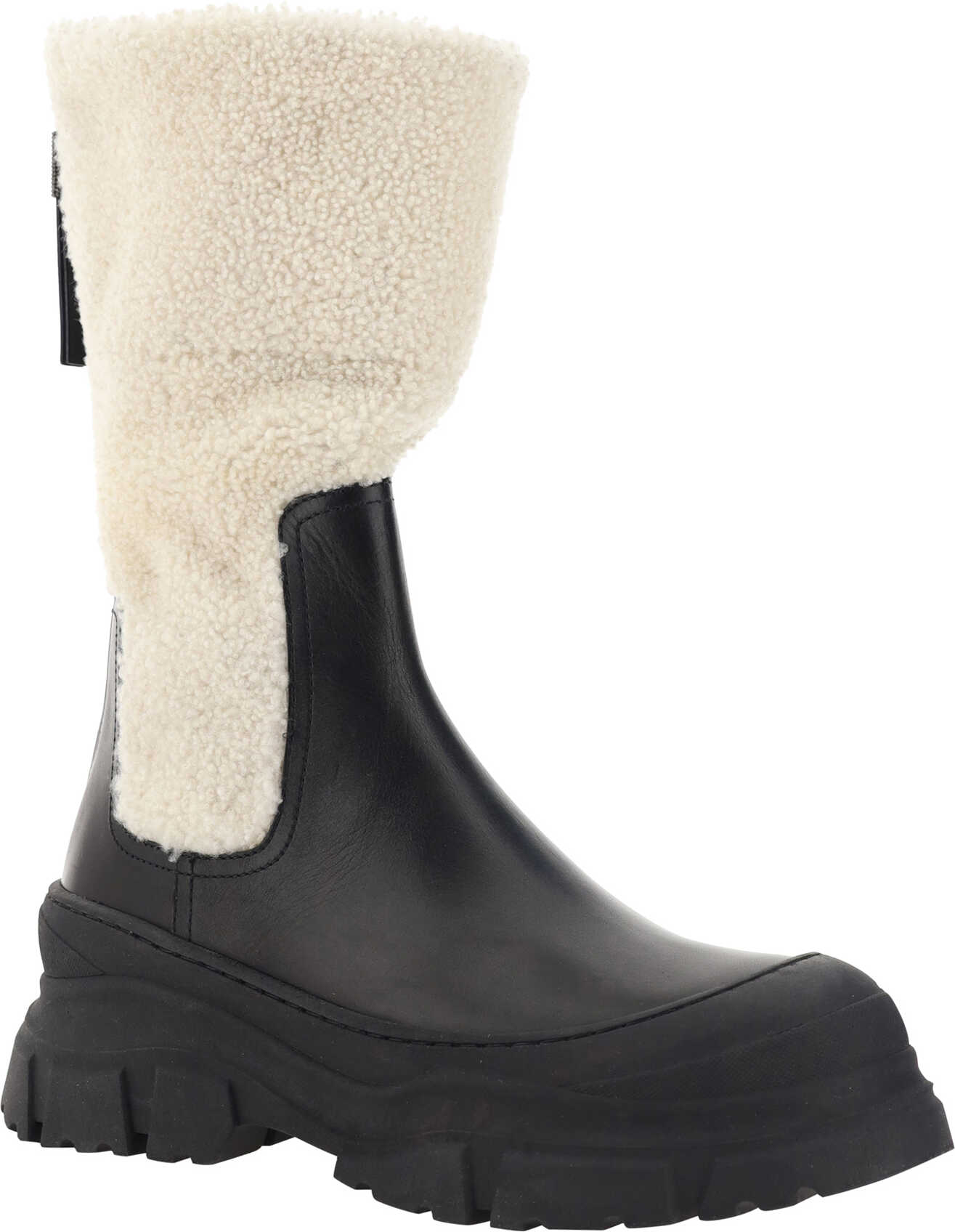 Calfskin Ankle Boots by Brunello Cucinelli, smooth leather design, contrasting fur inserts, back zipper fastening, platform sole, reinforced round toe.