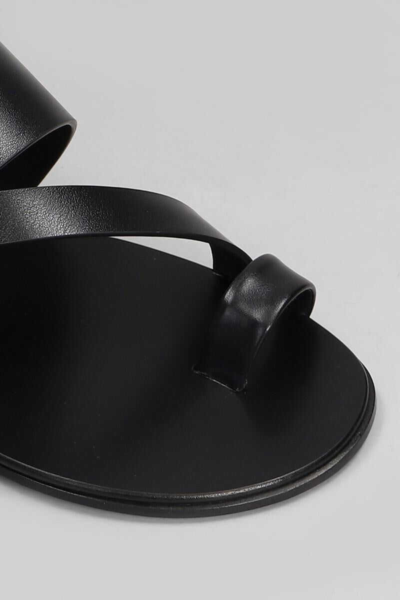 Sandals in black leather, buckle closure, one strap, flat rubber sole, 100% leather, Made in Italy