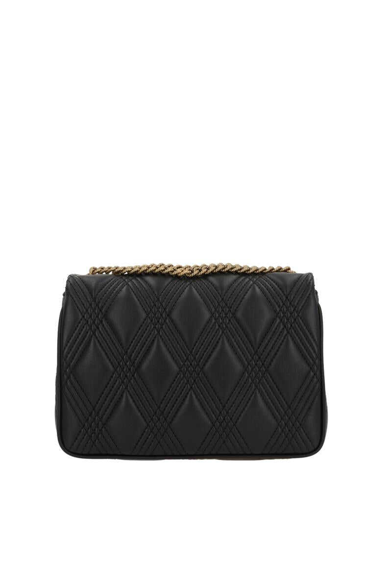 Valentino Garavani shoulder bag made of black quilted nappa leather. Featuring antiqued gold-tone hardware, push-lock closure on the flap, and an adjustable chain strap with two length options. The tone-on-tone nappa-lined interior includes a zip pocket and a card slot. The design is completed with the VLogo Signature plaque and signature studs.