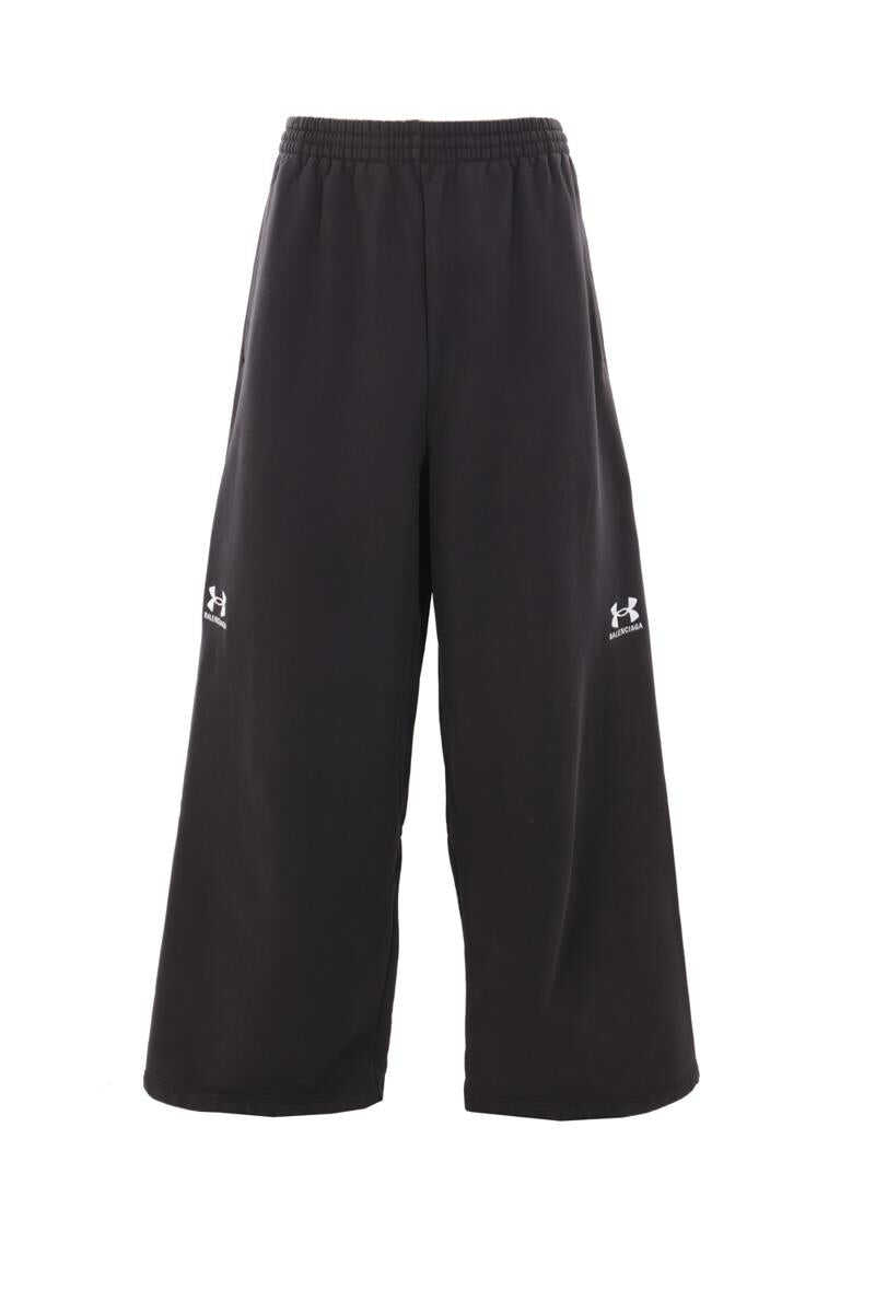 Balenciaga oversized joggers designed in collaboration with Under Armour® and made of washed black cotton jersey with embroidered logo on the sides. Featuring an elasticized waistband with a drawstring and side pockets.