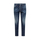 Blue jeans. Slim fit. Button closure. Five pockets. Belt loops. Logo label on the back.