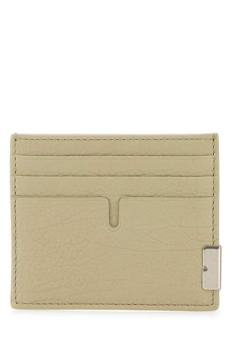 Sage green leather card holder Width: 10 cm Height: 8 cm