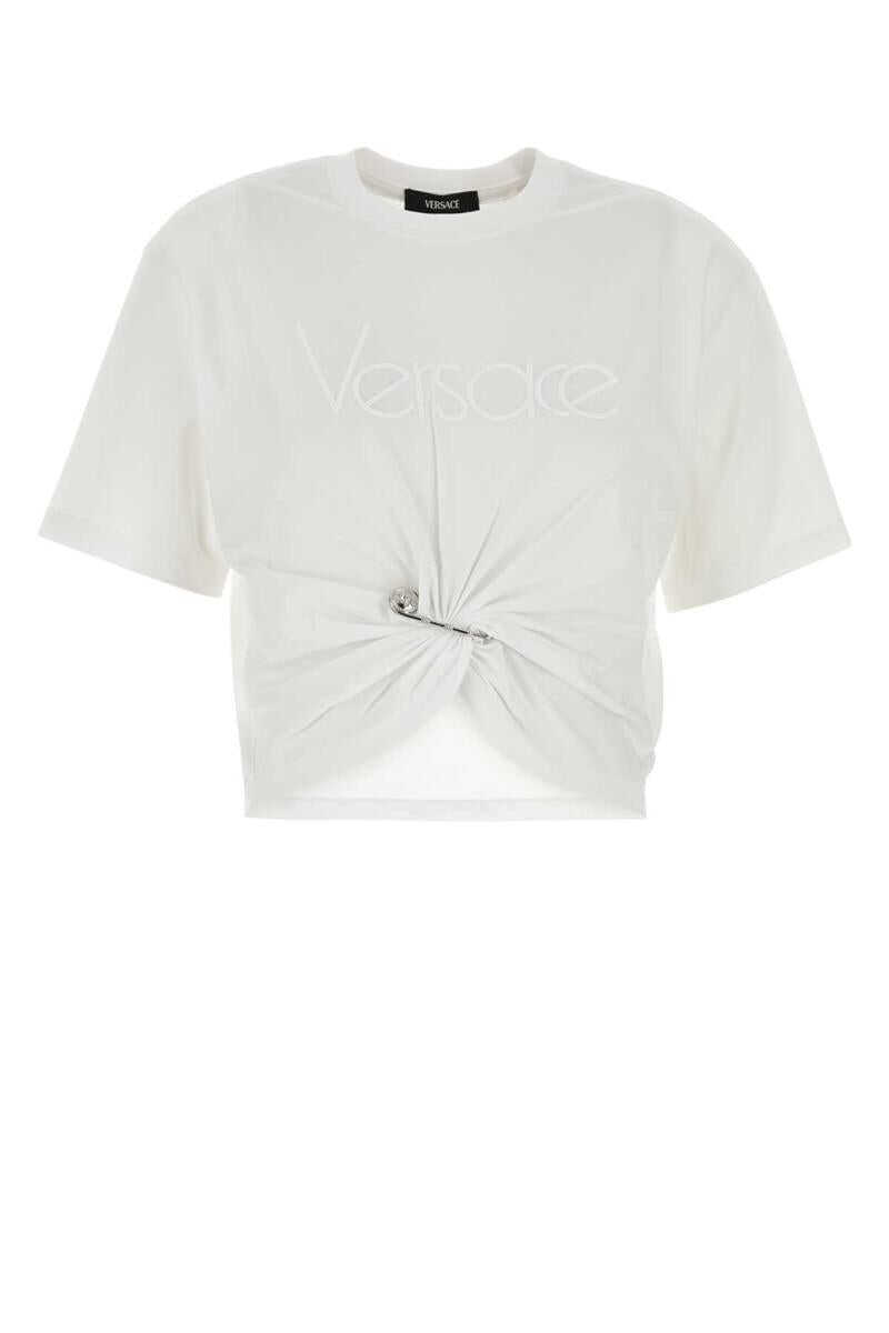 VERSACE LOGO EMBROIDERY COTTON JERSEY T-SHIRT