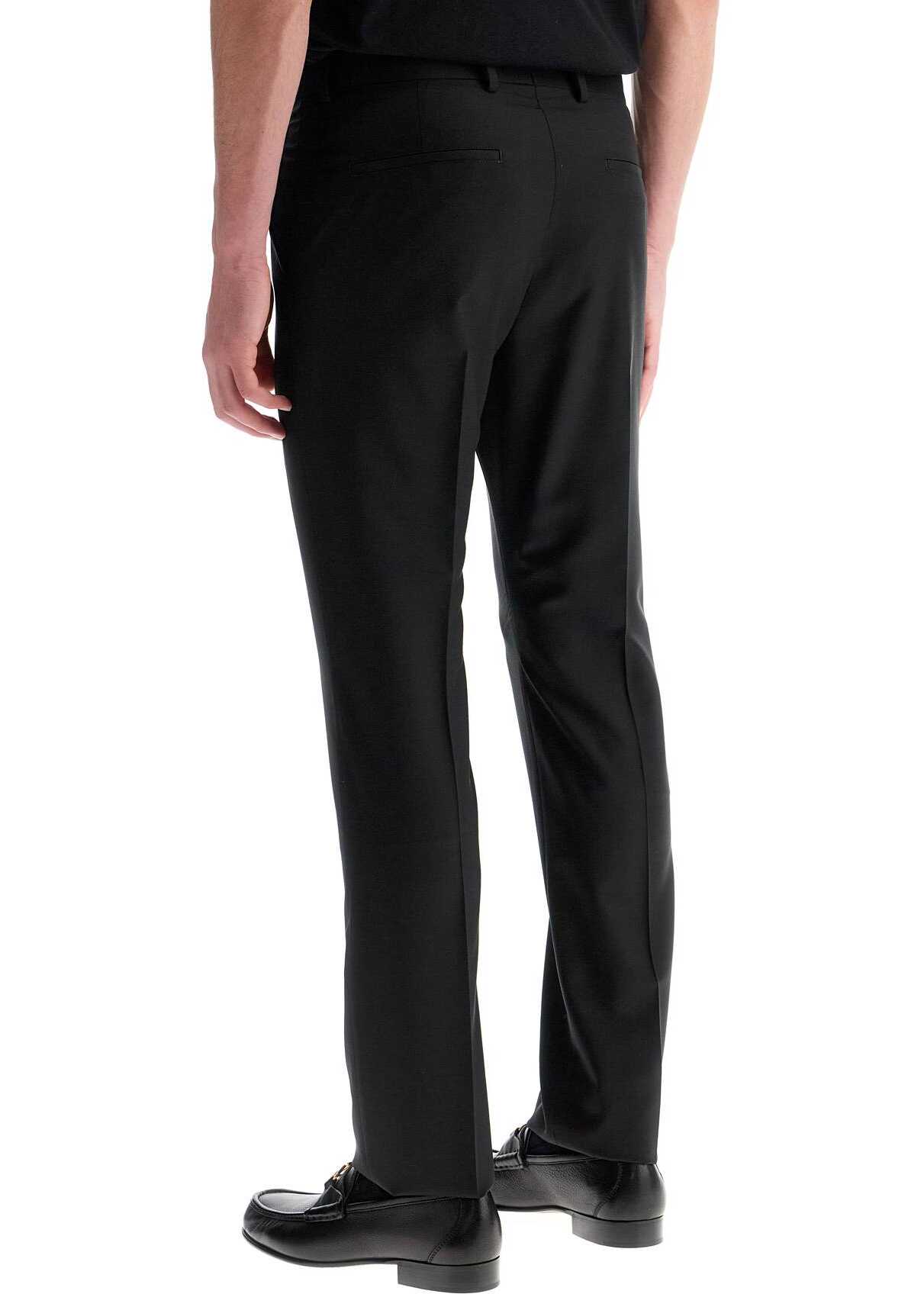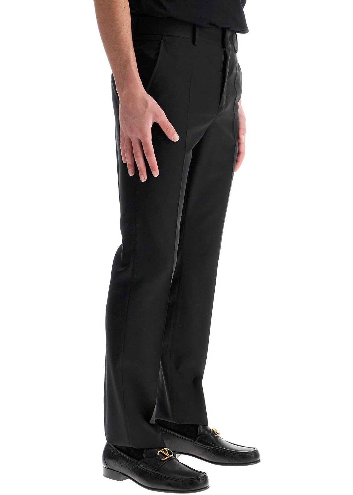 Valentino tailored trousers with a clean line and pressed crease, made from fine wool and mohair fabric with a smooth and lightweight feel. Featuring slanted pockets on the sides and welt pockets on the back, they are finished with belt loops and a zip and concealed hook closure. The hem is left unfinished for sartorial finishes. The model is 182 cm tall and wears size IT 46.