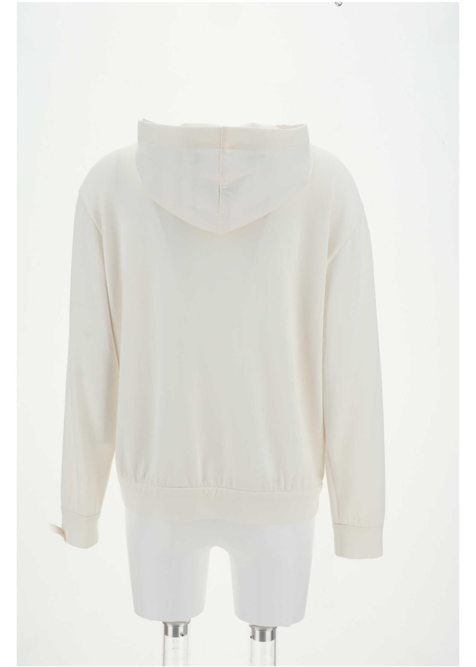 Brunello Cucinelli's cotton Hoodie is a casual yet sophisticated piece enhanced by unique details. The two side welt pockets are embellished with appliquéd shiny jewels, adding a touch of elegance to the design. The zipper closure on the front panel and the monochrome pattern make it a versatile and easy-to-match piece. This sweatshirt combines comfort and style, ideal for a modern and refined look.