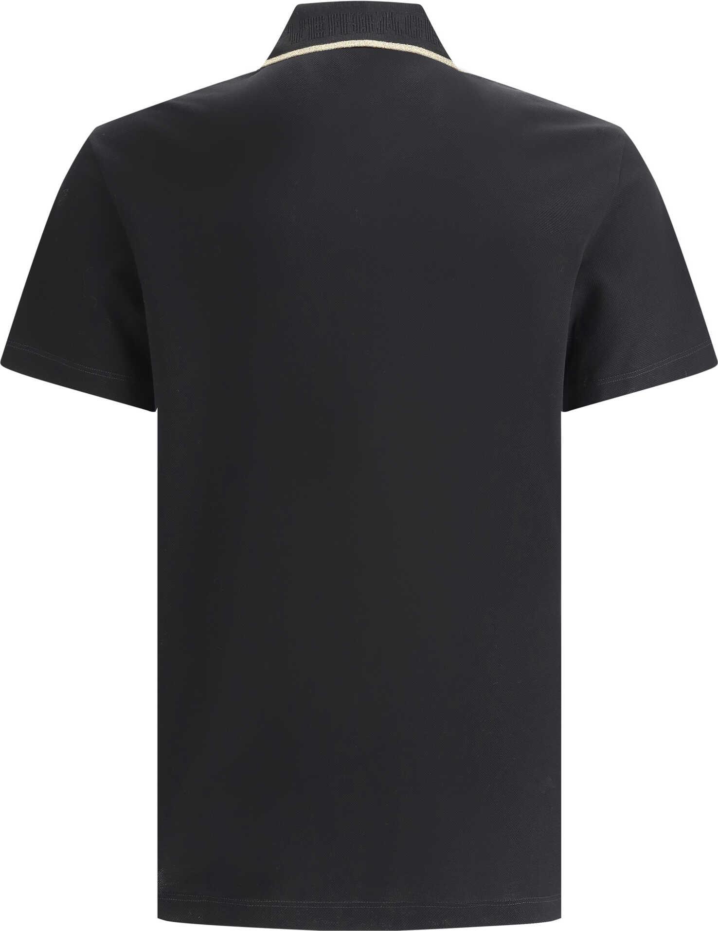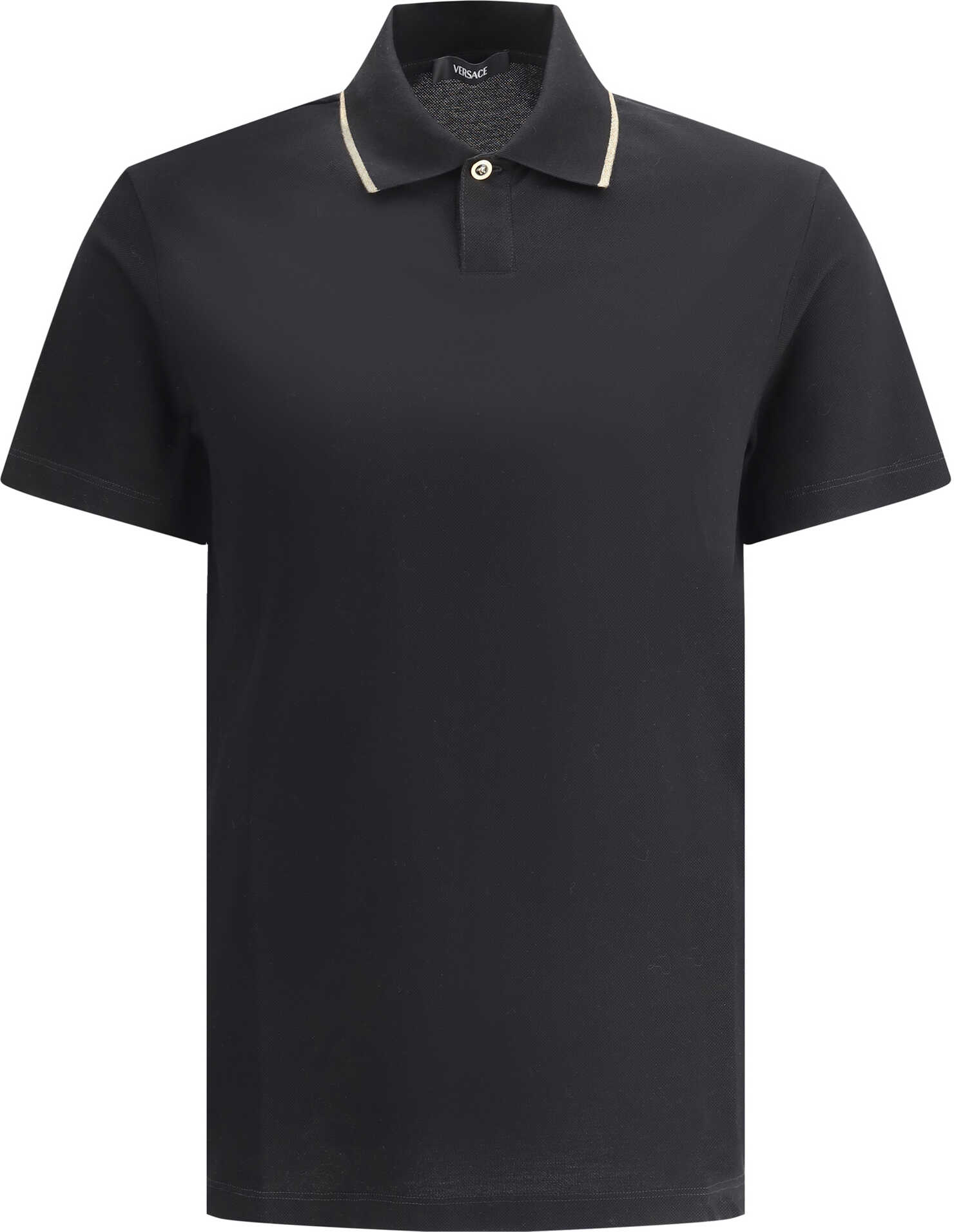Cotton Polo Shirt by Versace featuring classic ribbed collar, contrasting button front, monochrome pattern, regular fit.