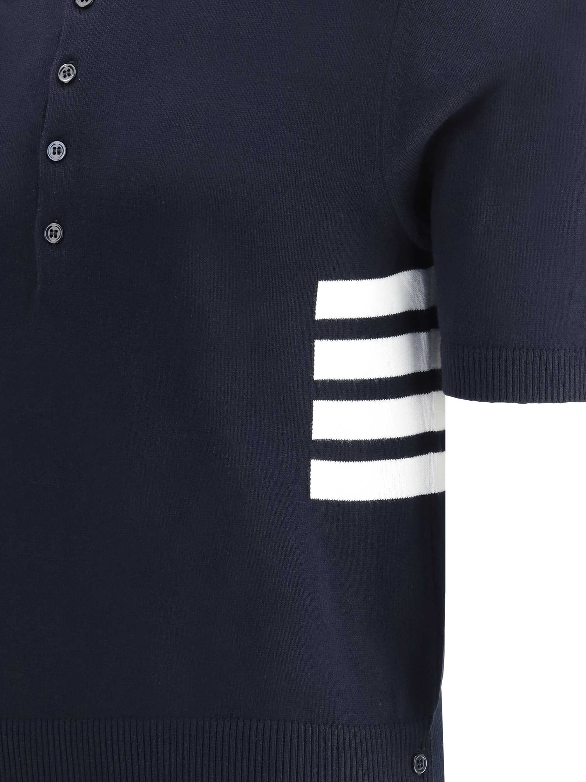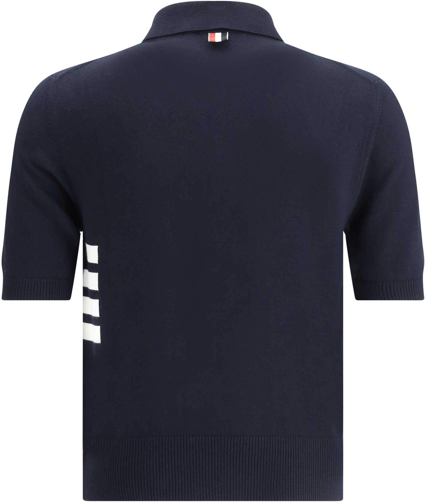 Cotton Polo Shirt by Thom Browne, classic ribbed collar, tone-on-tone front buttons, iconic contrasting horizontal bands on side panel, adjustable side slits with buttons, regular fit.