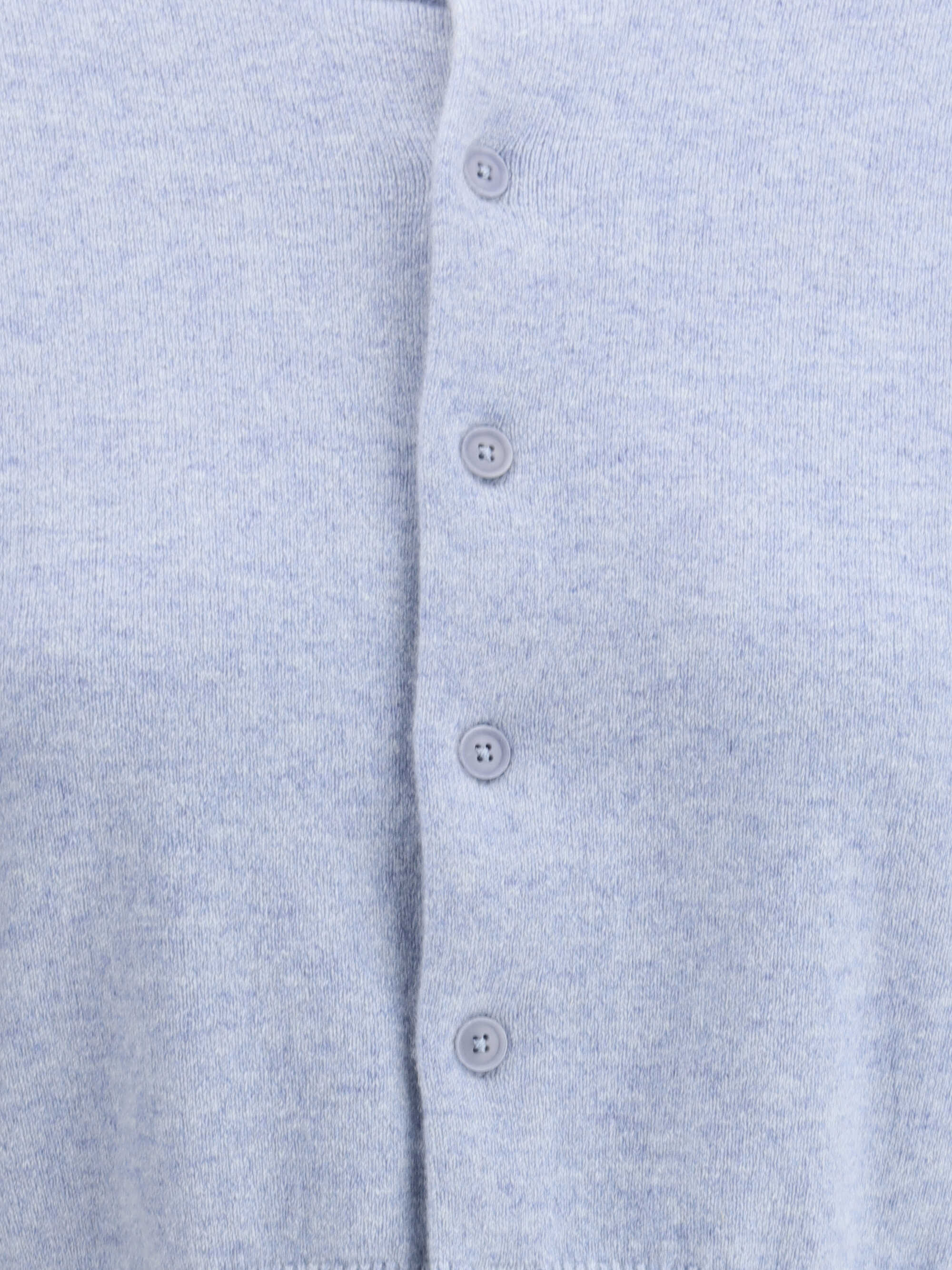Little cashmere cardigan by Extreme Cashmere is a classic and refined design. It features a front closure with tone-on-tone buttons, enhancing its simplicity. The ribbed crew neck, ribbed cuffs and high ribbed hem add a touch of practicality and comfort. Exposed seams and a mélange pattern give a sophisticated, modern effect.