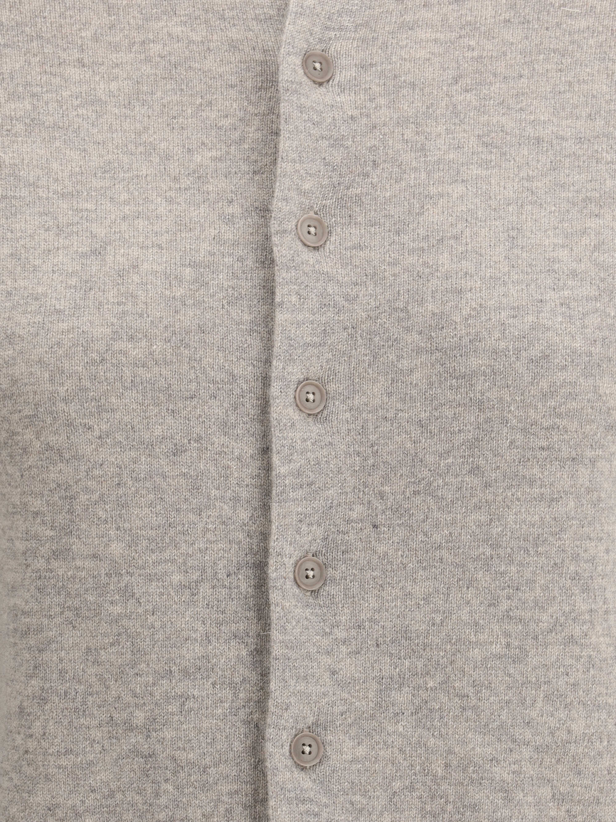 Little cashmere Cardigan by Extreme Cashmere is a classic and refined design. It features a front closure with tone-on-tone buttons, enhancing its simplicity. The ribbed crew neck, ribbed cuffs and high ribbed hem add a touch of practicality and comfort.