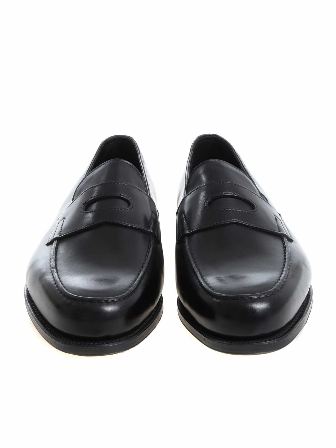 John Lobb college loafer in black leather, entirely hand-sewn, round toe, leather sole, fitting E.