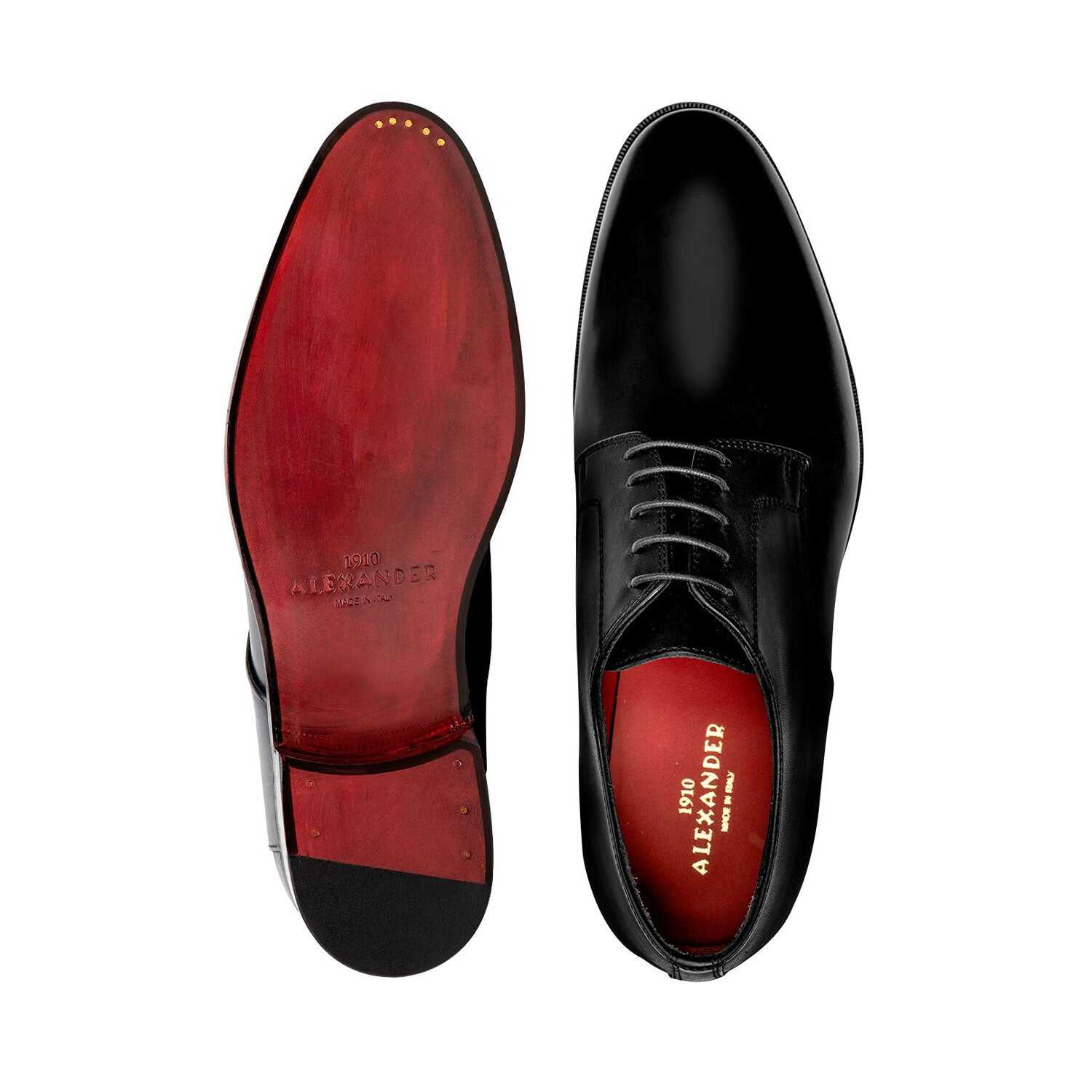 Step into sophistication with the Derby Alexander 1910 Montenapoleone. Crafted from luxurious calf leather, this elegant lace-up derby features a sleek design and a striking carmine red lining. Perfect for both casual and formal occasions!
