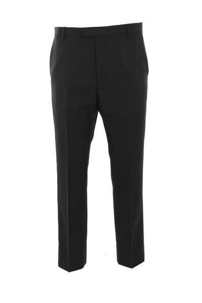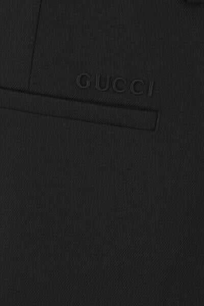 Gucci's regular-fit trousers crafted in black wool blend twill. Featuring button / hook / zip closure, belt loops, multiple pockets, central pressed crease and partial lined interior. The design is completed by the iconic lettering logo embroidered at back.