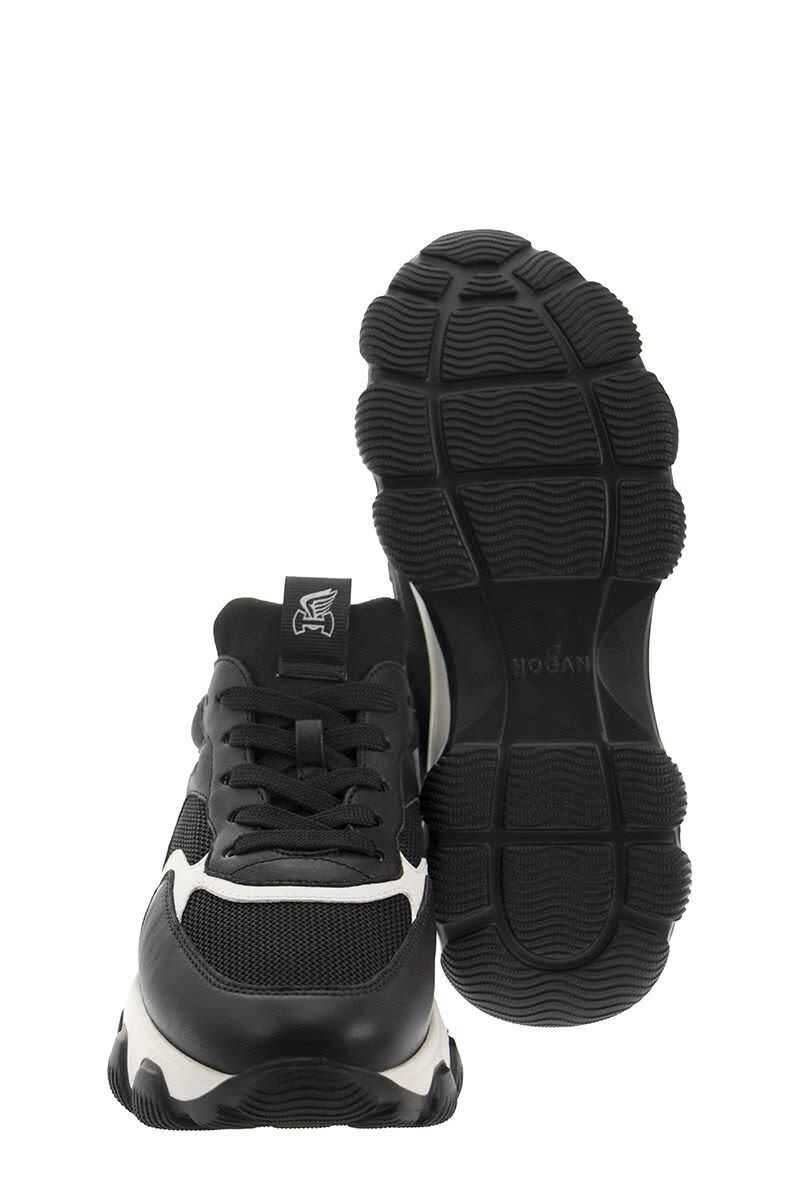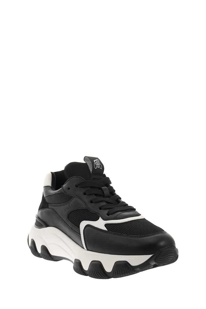 Sneakers Hogan "Hyperactive" in Black leather. White contrasting inserts. Round tip. Logo patch on the tongue. Laced. Tone-on-tone "Hogan" logo on the side. Memory foam fussbed. Rubber sole. 8mm memory foam fussbed Total height 6.2 cm