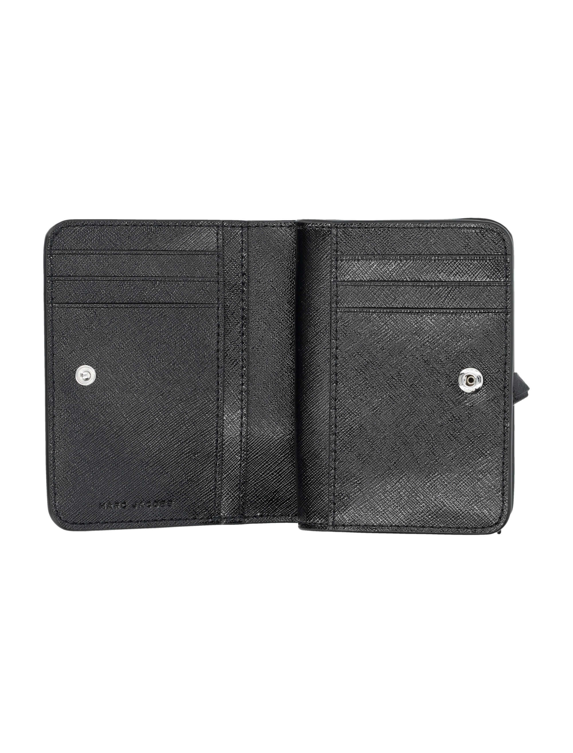 Stay organized in style with the Marc Jacobs Kids mini compact wallet. Crafted from 100% split cow leather, this sleek wallet features multiple card slots, a bill compartment, and an exterior pocket with the signature double-J logo. Perfect for keeping your essentials safe and secure while on the go.