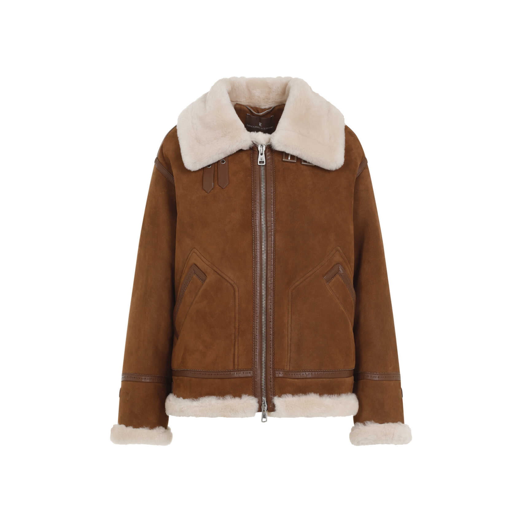 Stay warm and stylish in this luxurious ERMANNO SCERVINO coat. Made from 100% lamb fur and shearling, the brown color complements any outfit. Perfect for the modern woman who values both fashion and comfort. Elevate your winter wardrobe with this high-quality piece.
