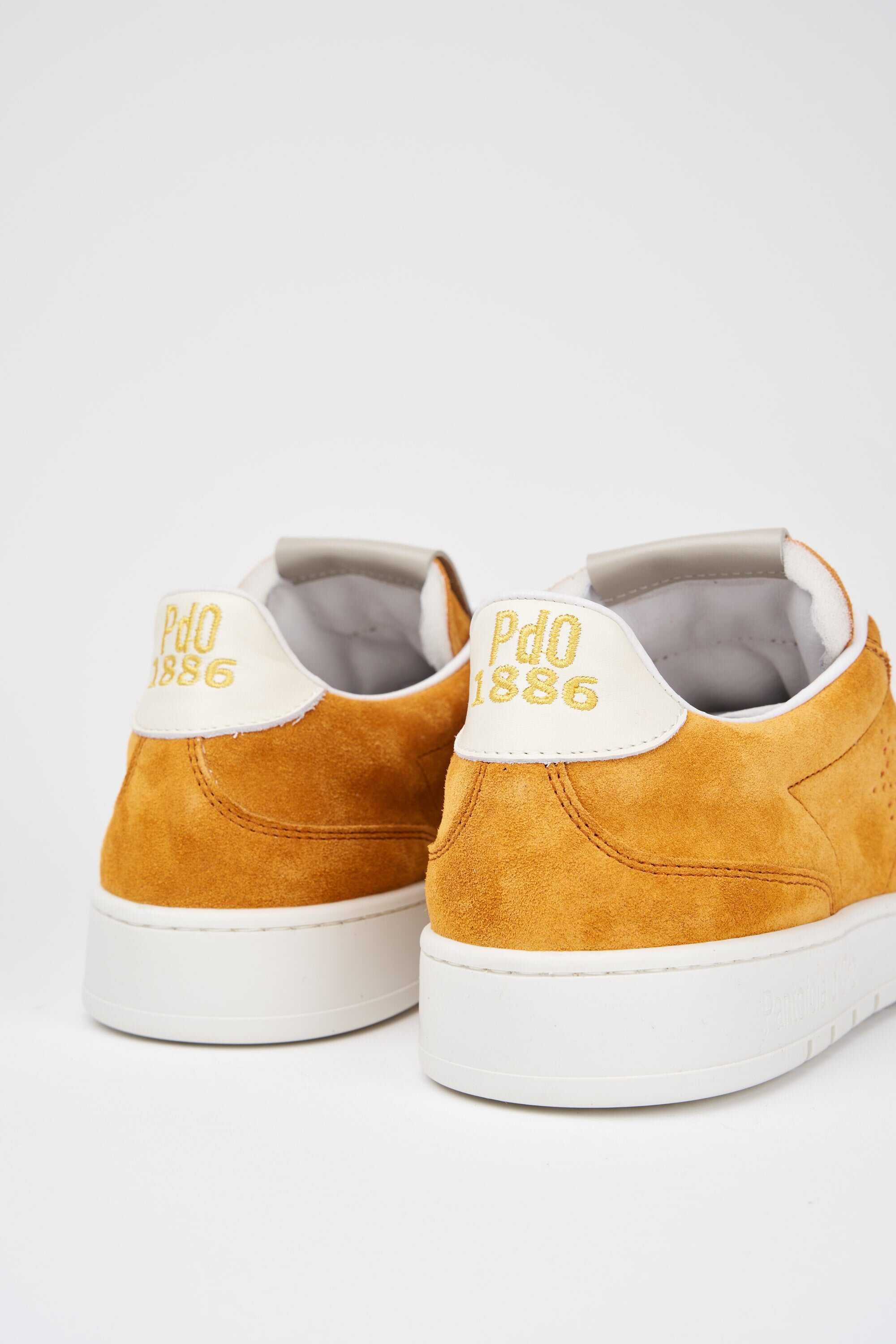 The upper is made of split leather and features the three Pantofola d'Oro stars made with holes on the sides. A toe is superimposed on the upper, also in split leather, which extends across all the nose pads, i.e. the parts subjected to the lace, and is marked by stitching that swells the underlying padding.